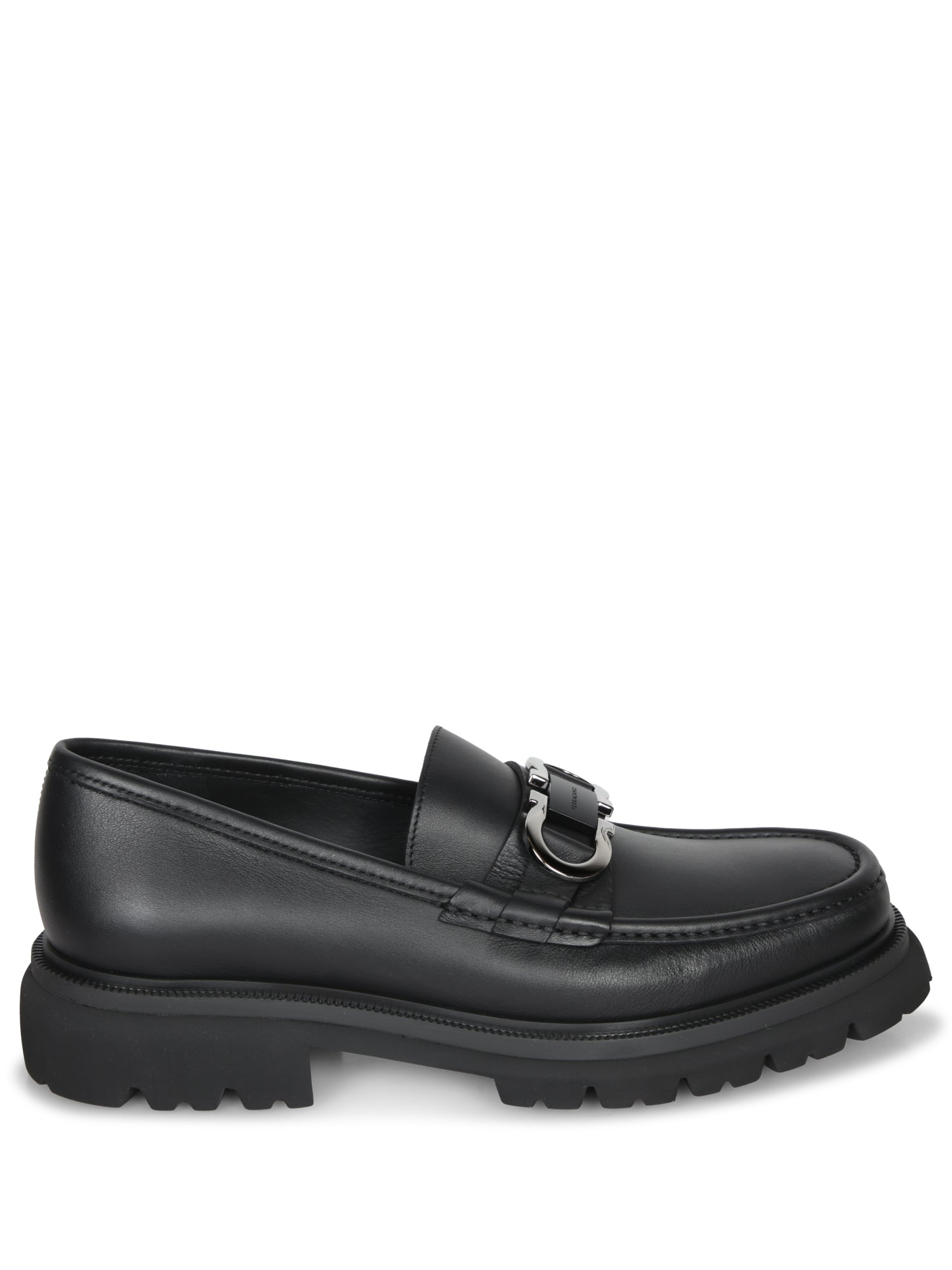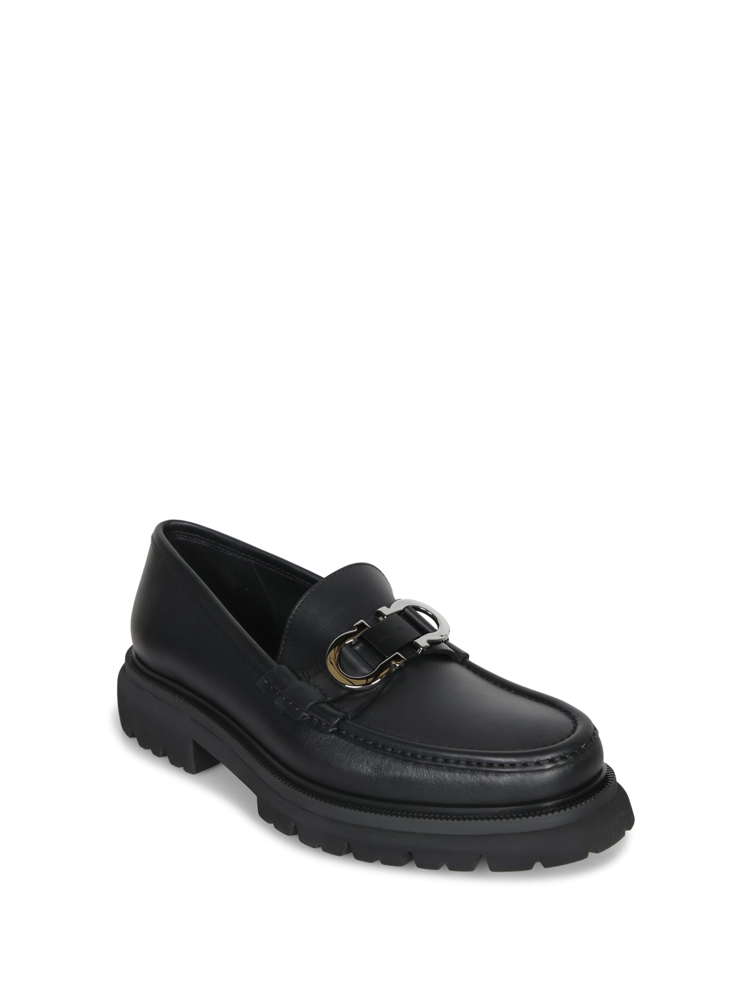Redefine everyday elegance with Ferragamo's Black Gancini Loafer, blending sophistication with functionality. A refined style with a serrated sole for a contemporary touch.