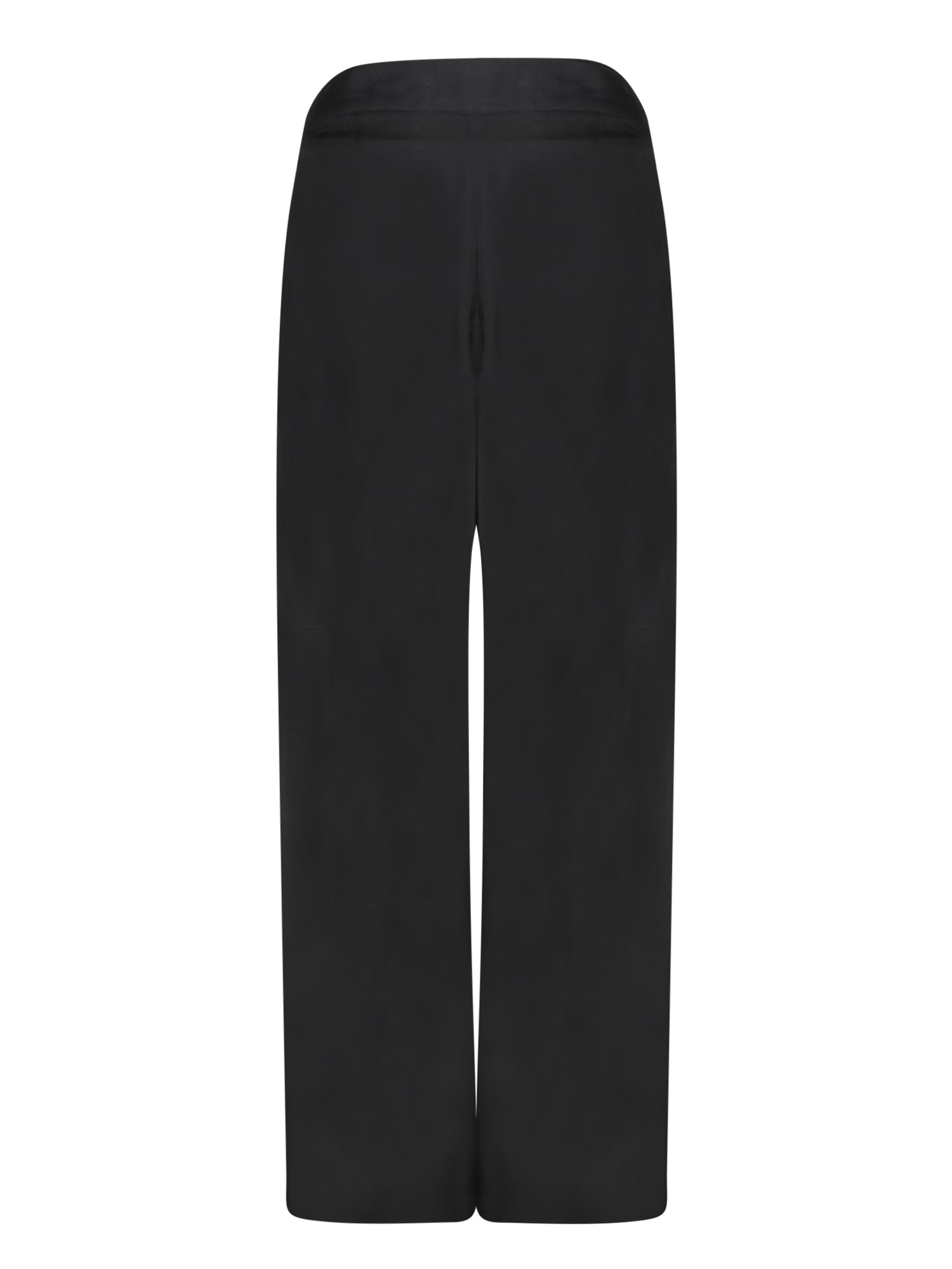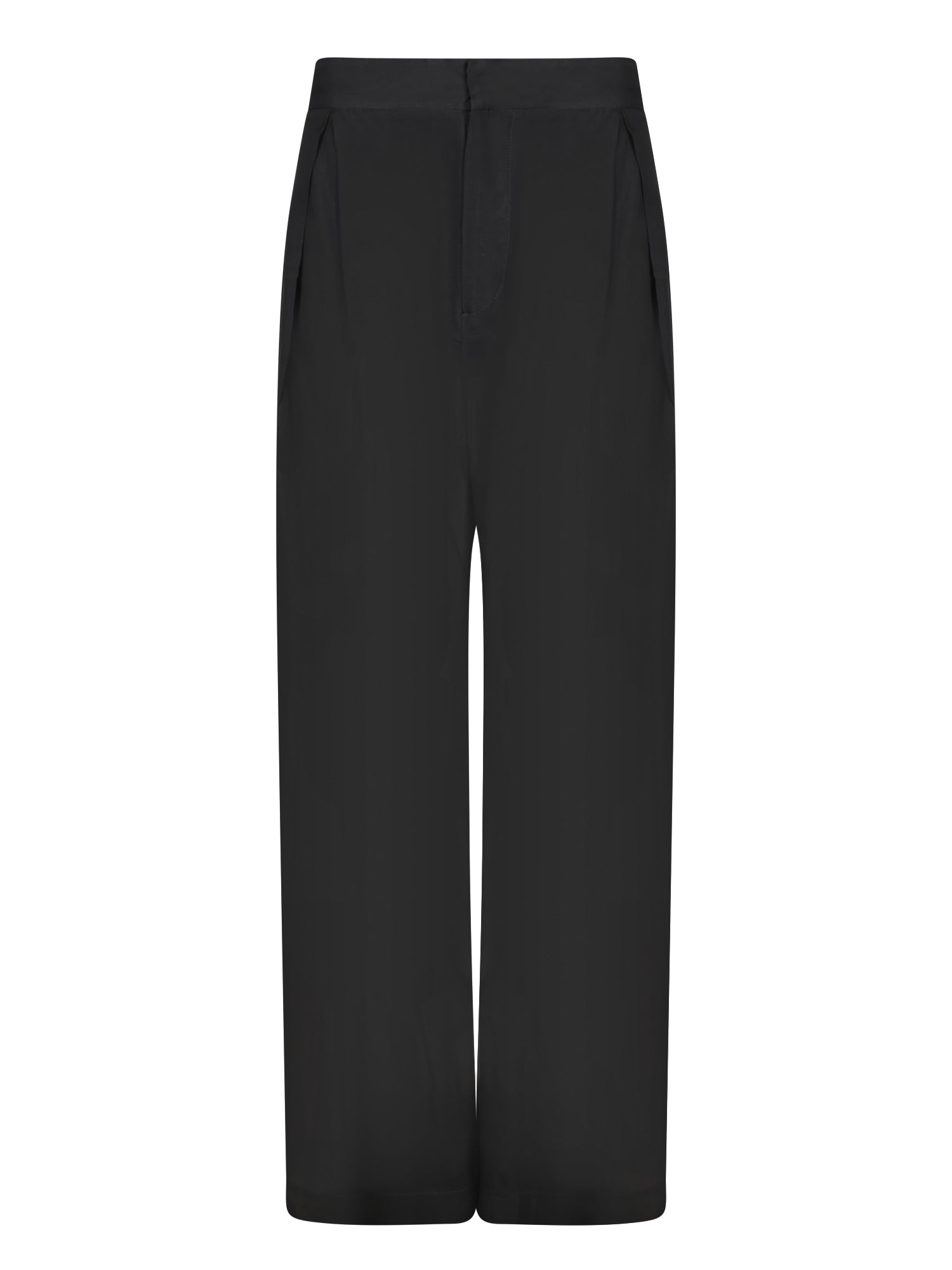 Black chiffon trousers. Wide and flowing cut. High waist with hidden back closure.