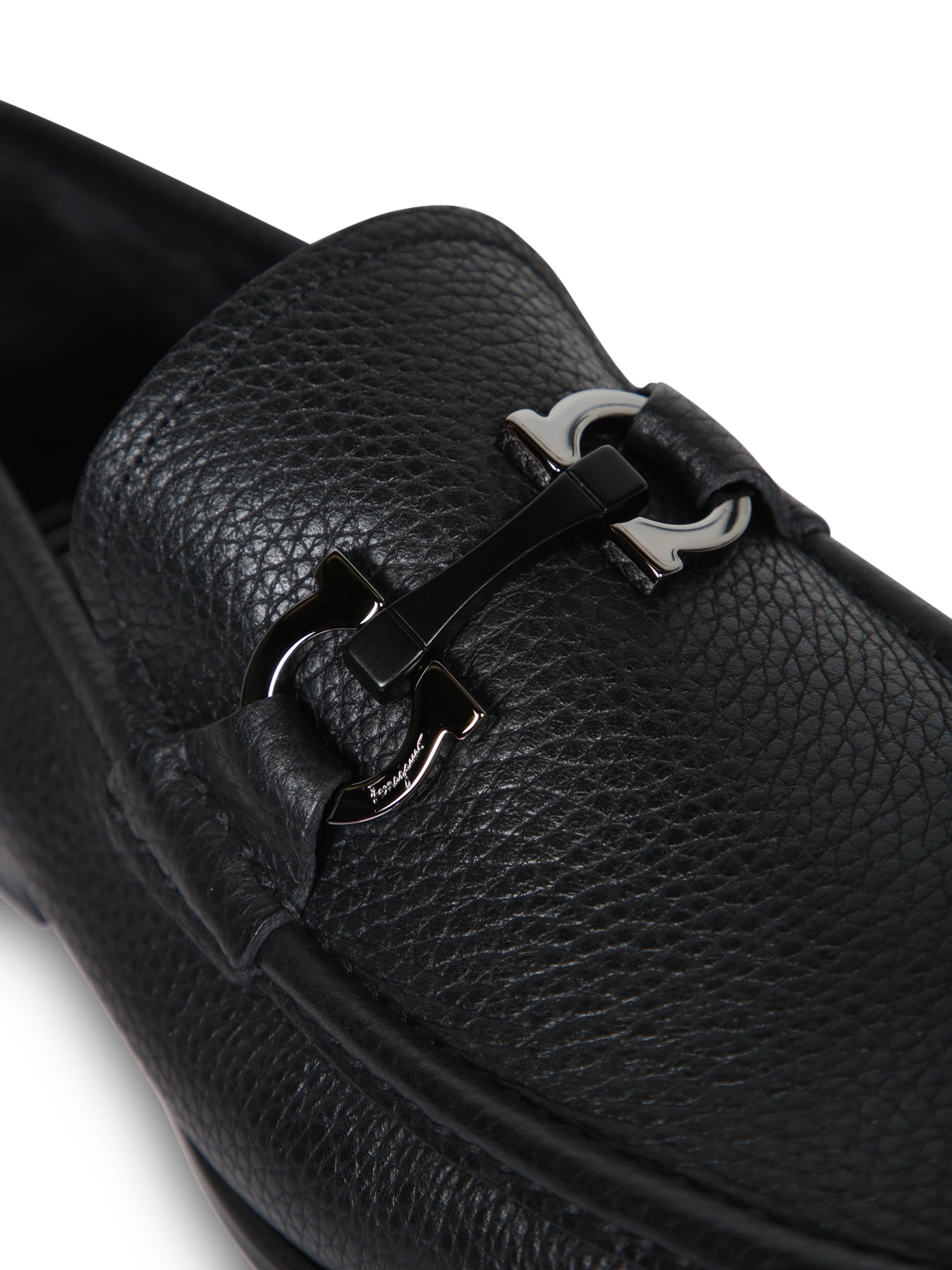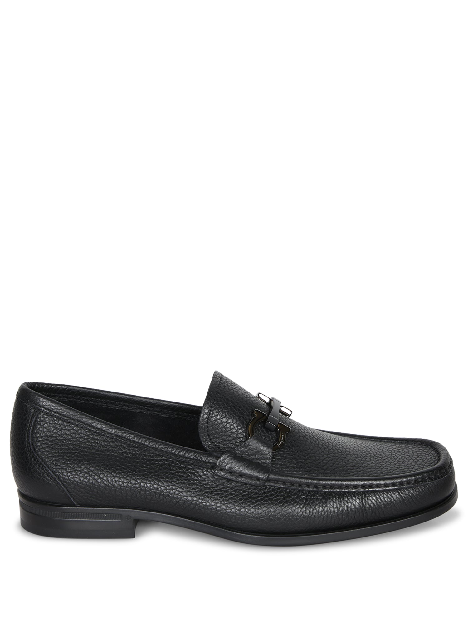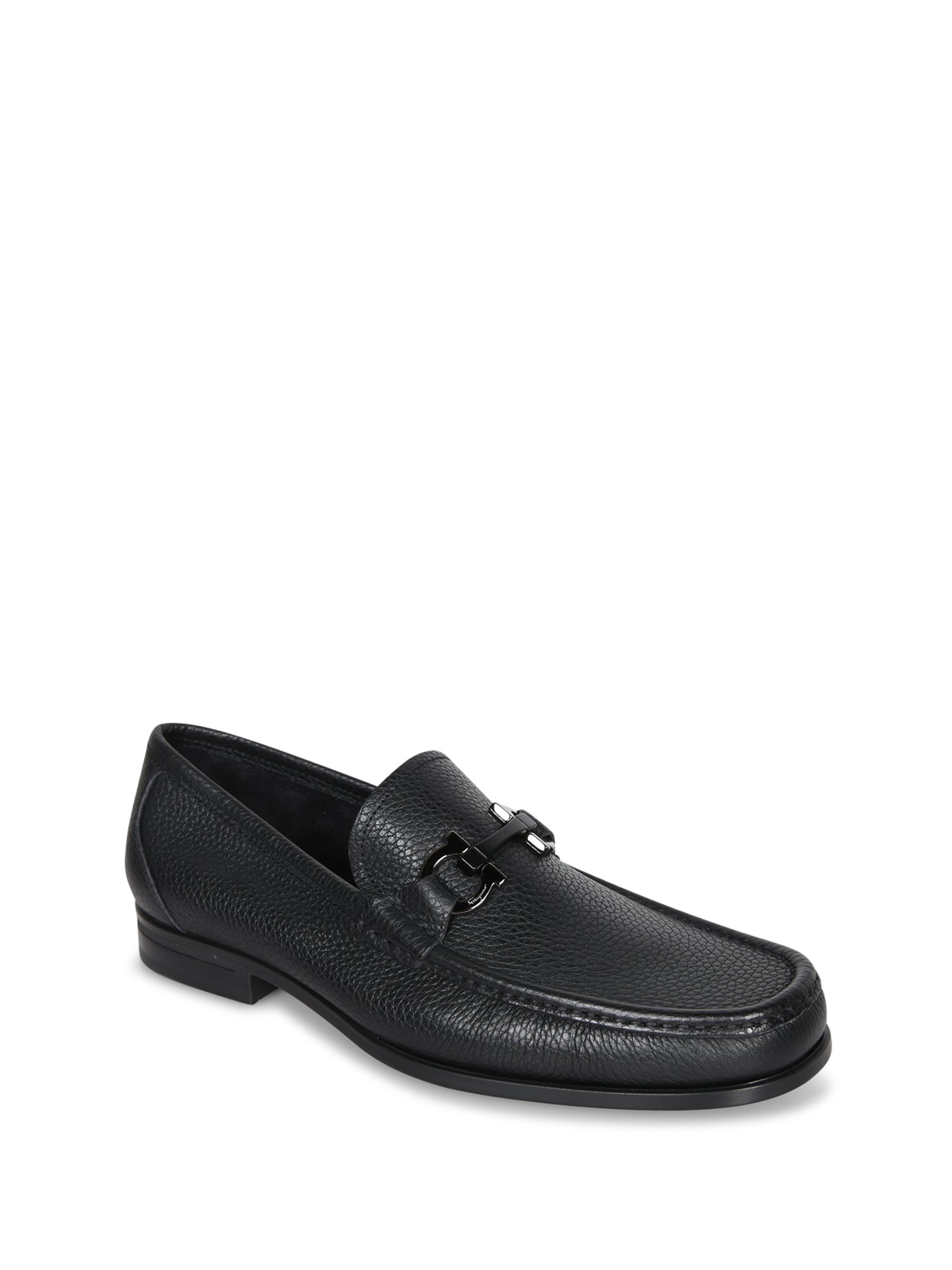 Ferragamo's Grand Gancini loafers reinvent a classic with a prestigious touch. Crafted from premium black leather, they feature a distinctive metal buckle, enhancing the elegance of the design.