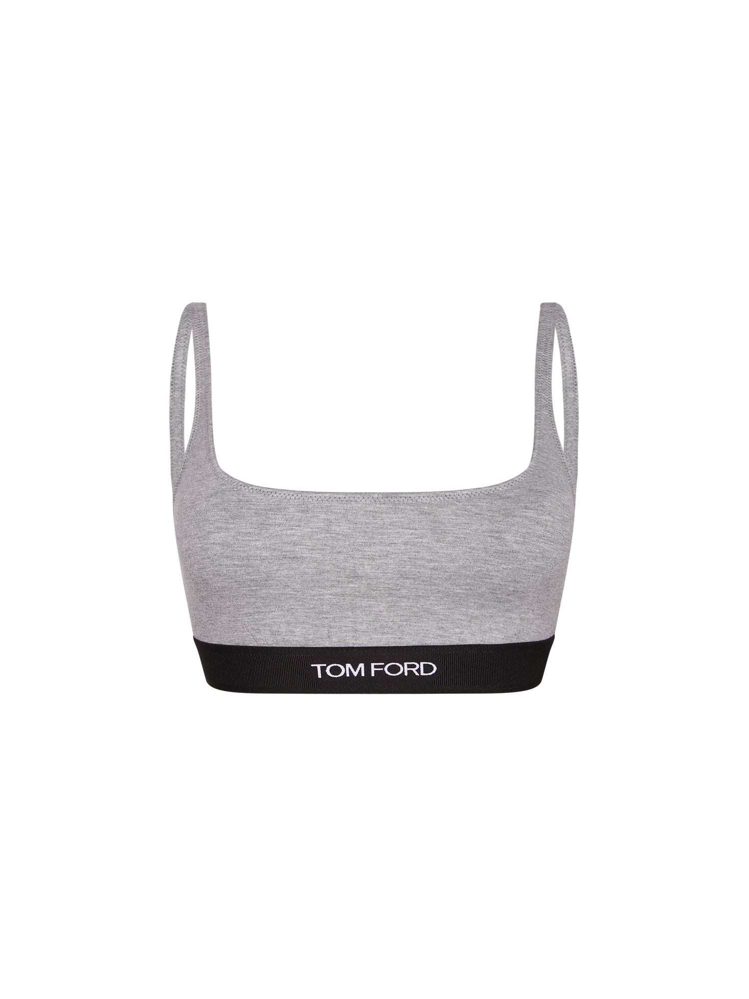 Bralette-style top. Elastic band with logo. Square neckline.