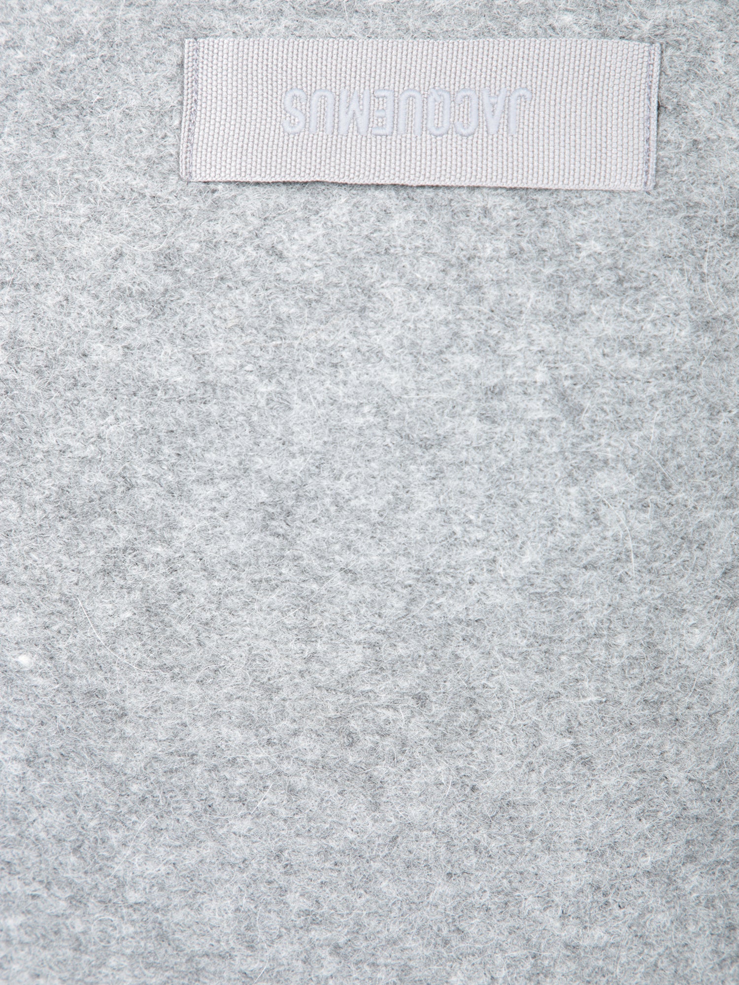 Grey gros grain fabric shawl featuring an elegant design with frontal draping and delicate tie-up.