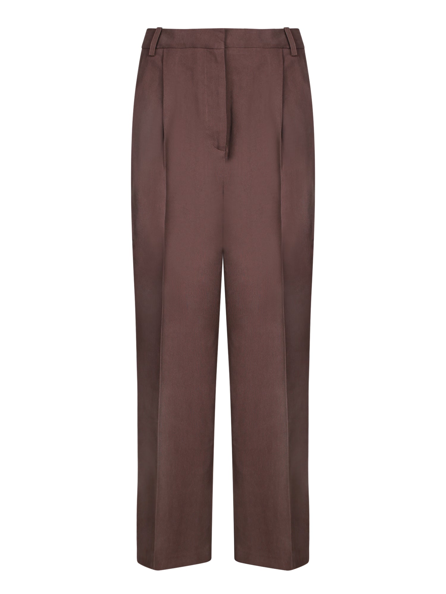 Soft and silky fabric. Wide straight-leg cut. Minimalist details with central pleat.