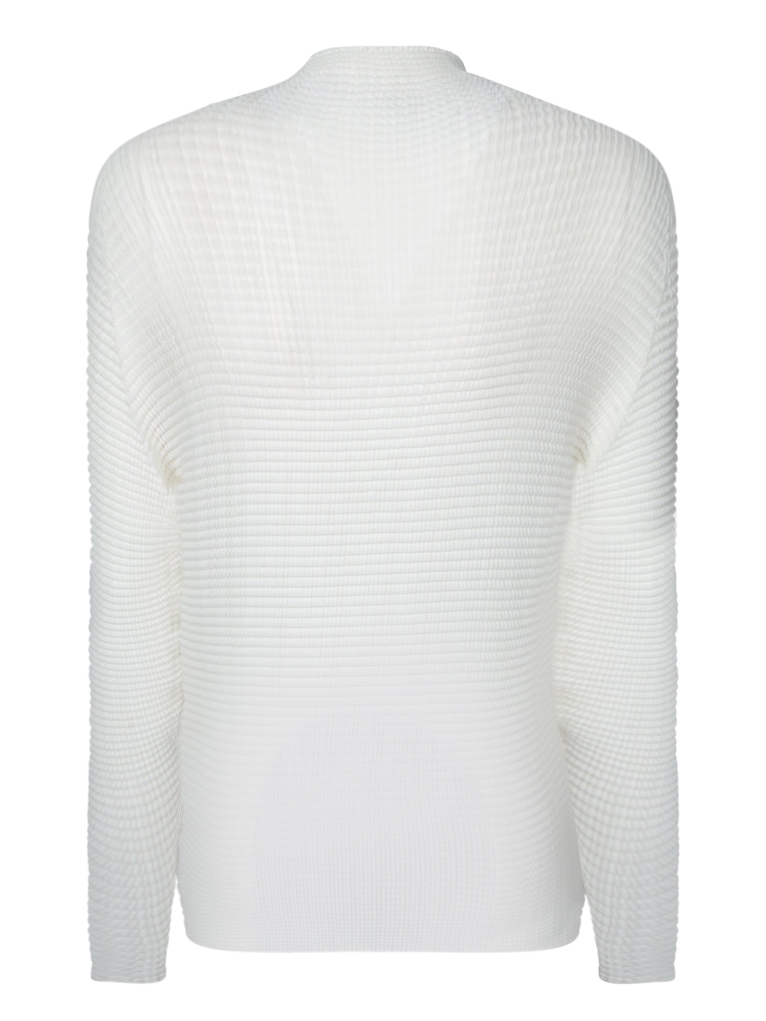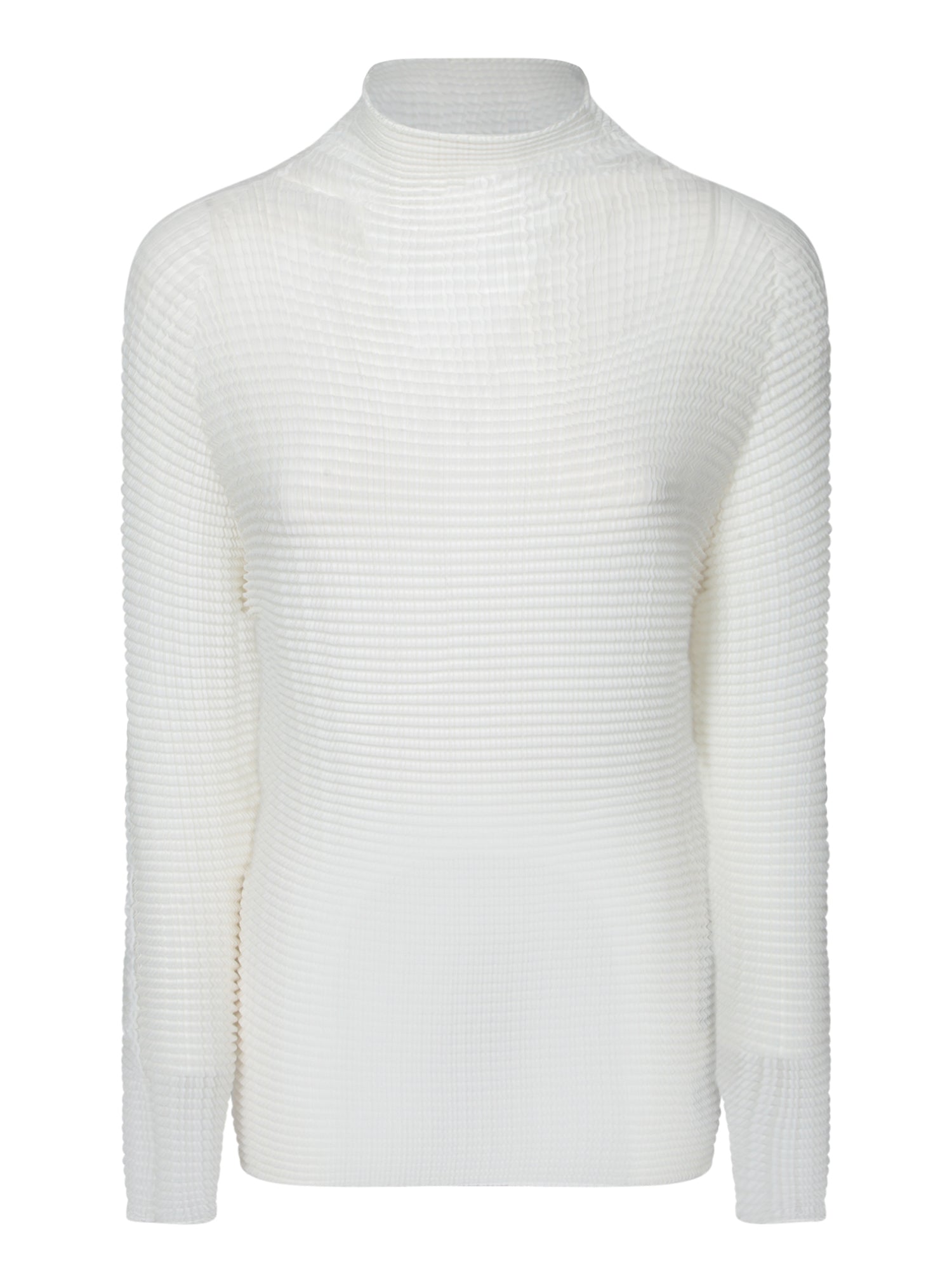 Explore innovative silhouettes and sophisticated comfort with this pure white Issey Miyake top, crafted with a pleated design that creates an elegant, flowing shape.