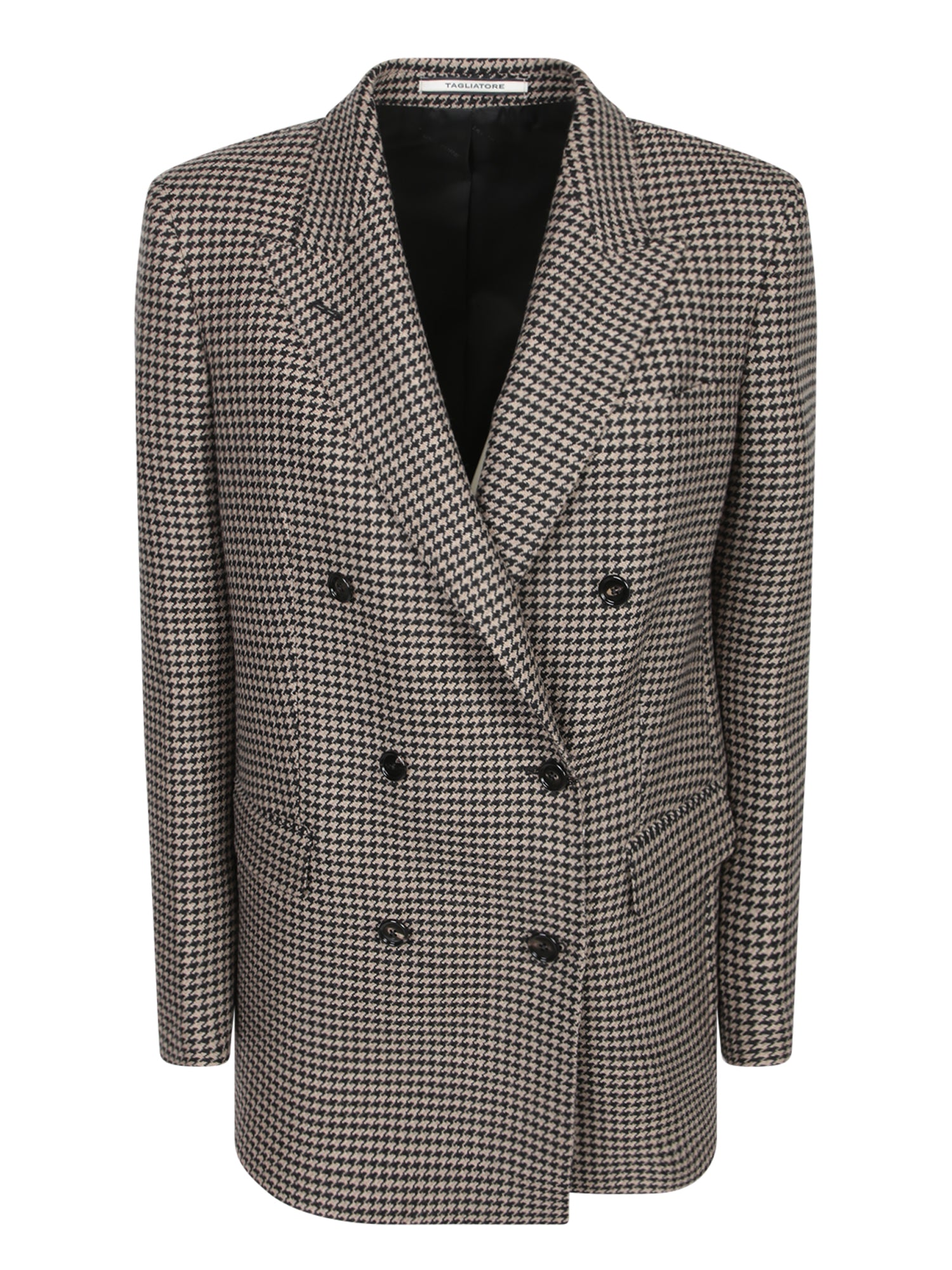Double-breasted jacket. Houndstooth pattern. Wool blend fabric.