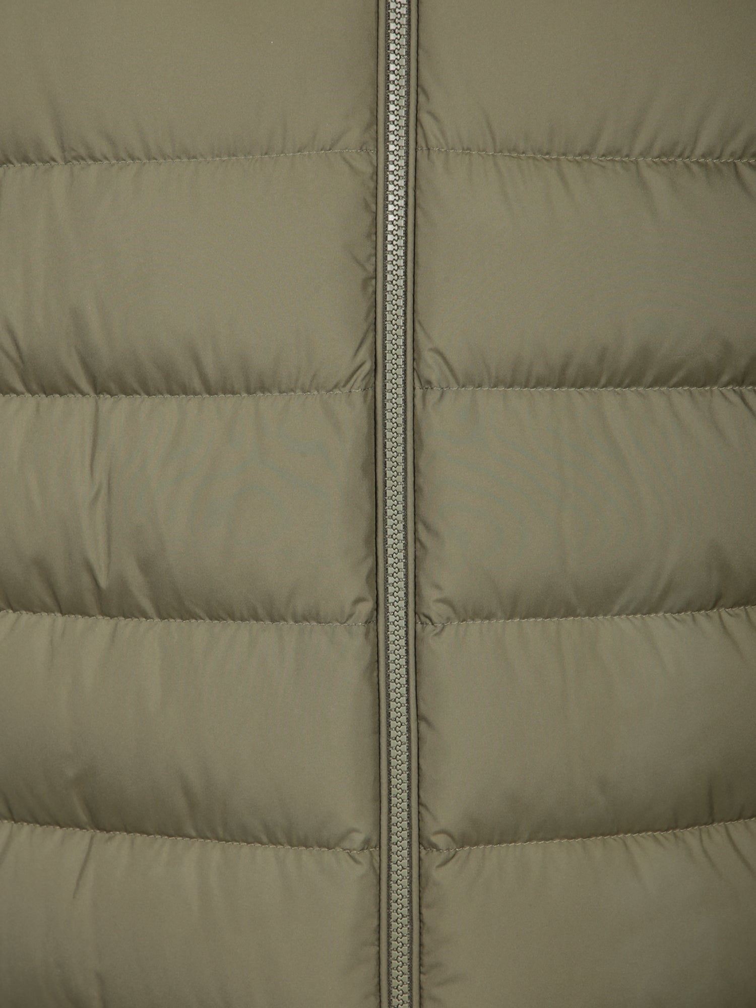 Quilted jacket with hood, zip closure, elastic details on the cuffs.