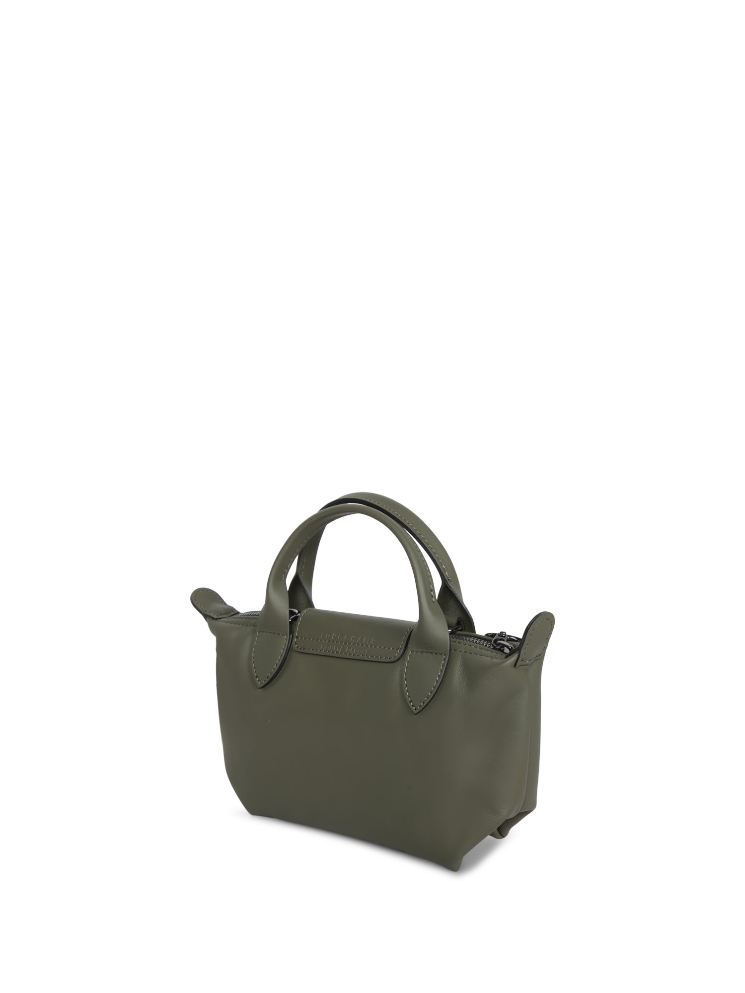 This mini bag by Longchamp blends functionality and elegance with its adjustable and removable strap, finished in a delicate sapin green. Perfect for everyday use and special occasions.