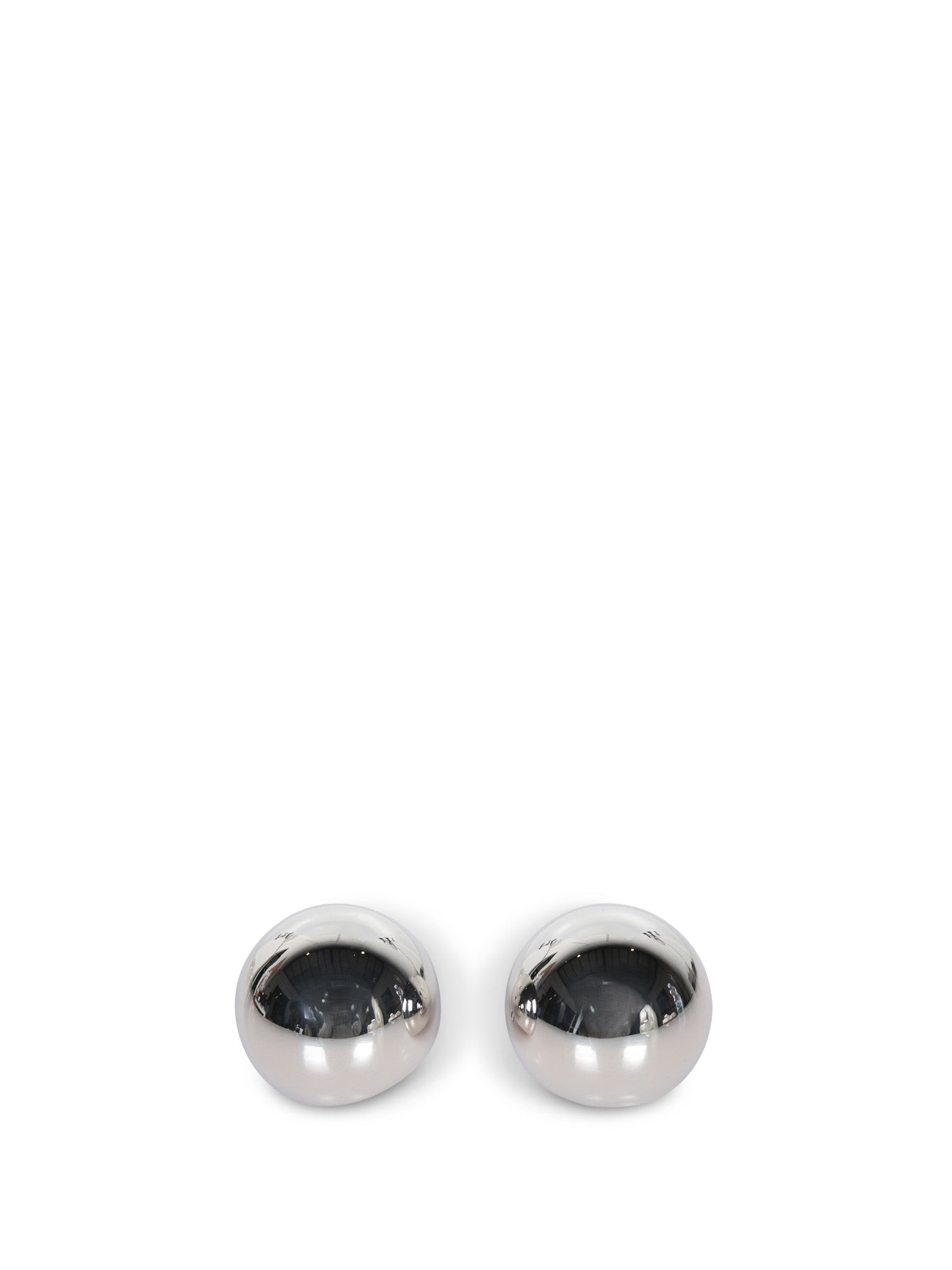 Round silver metal earrings. Minimalist and polished design.