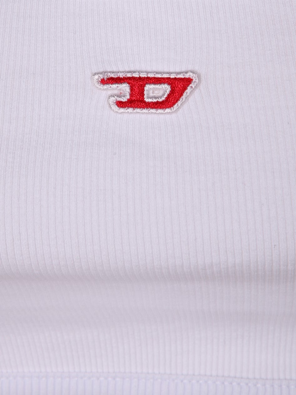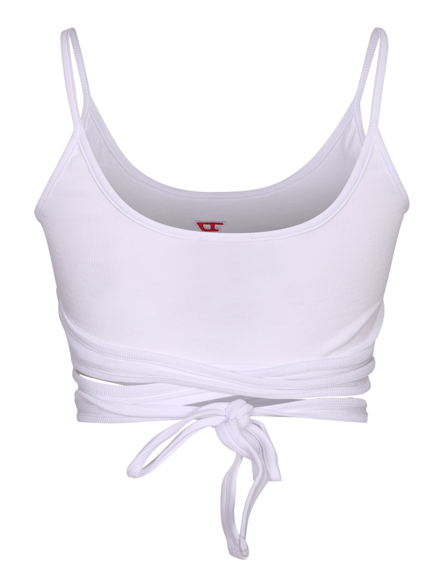 Sleeveless top. Embroidered logo detail. Wrap-around ties.