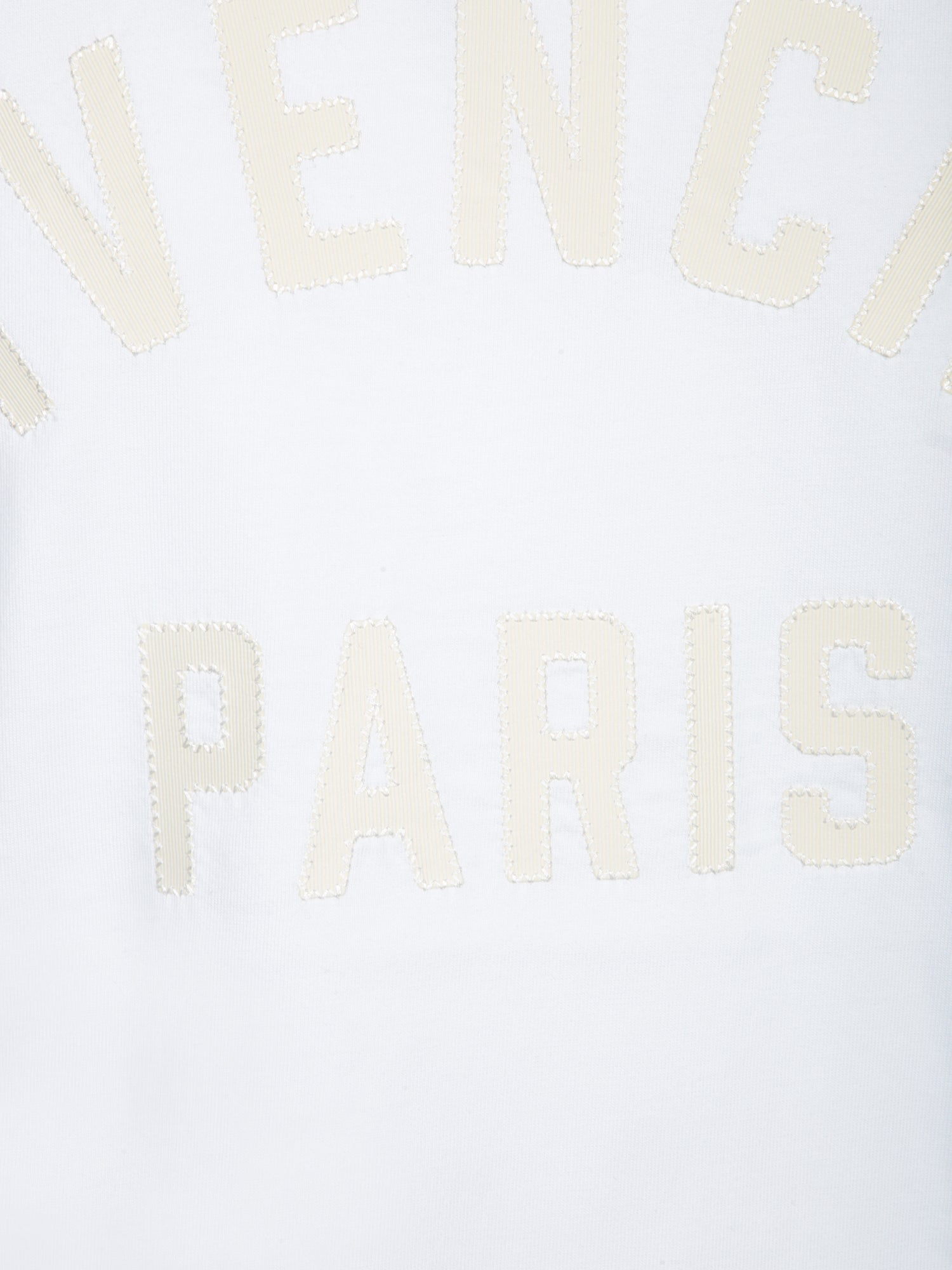 Short sleeves, tonal embossed Givenchy logo on the front, crew neck.