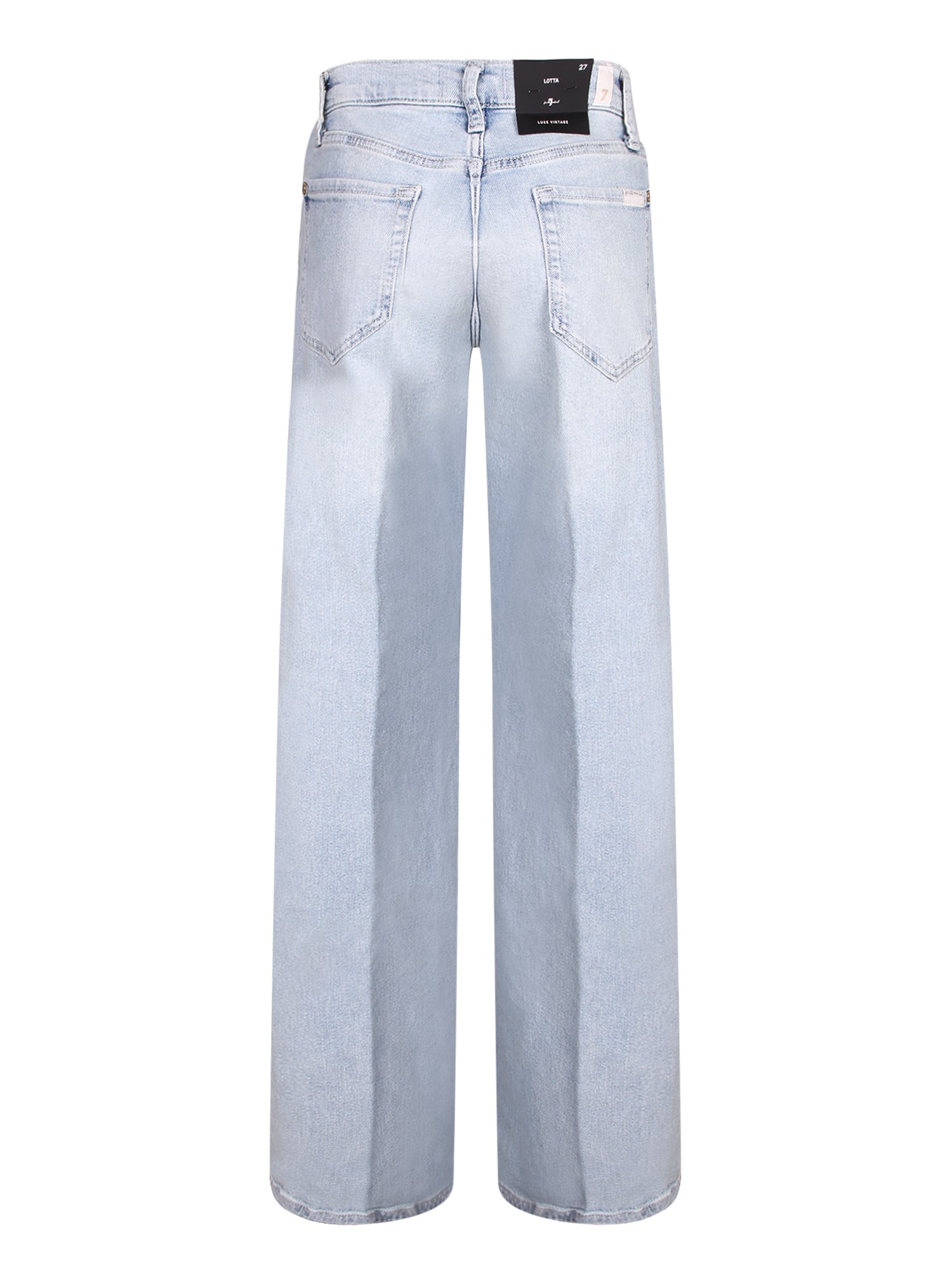 Wide leg cut. Mid-rise waist. Front button and zip closure.
