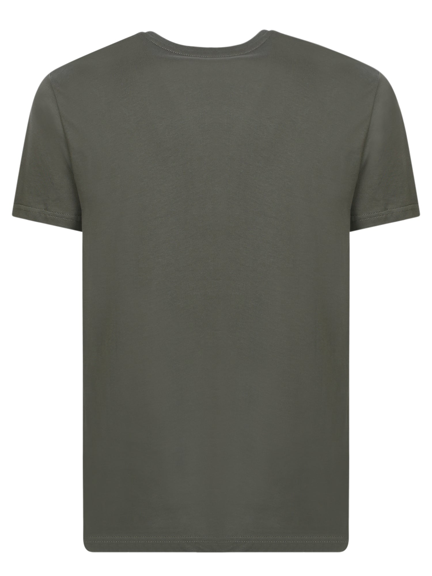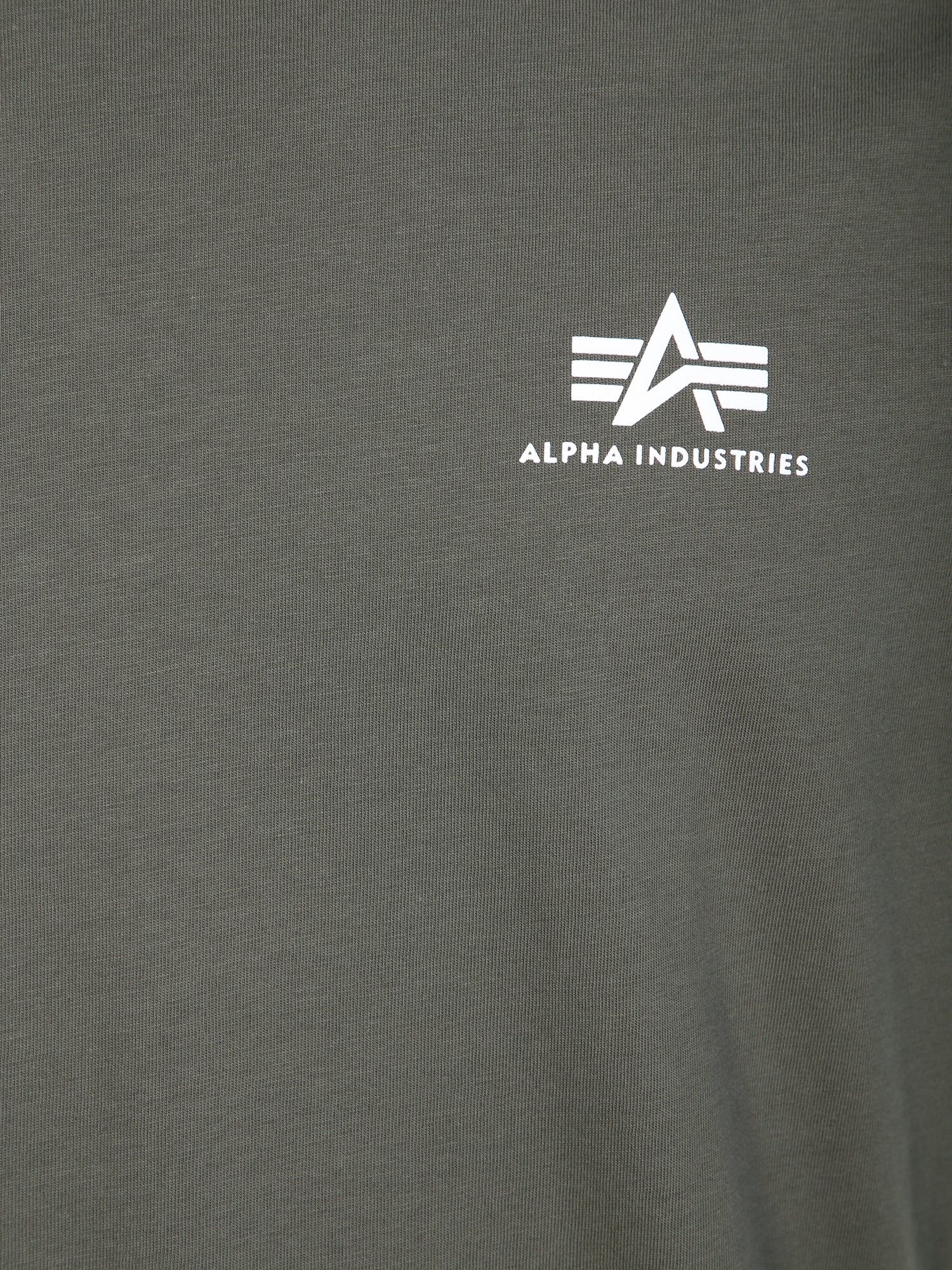 Military green logo t-shirt by Alpha Industries; the garment boasts a casual and minimalist design, enhanced by the iconic logo