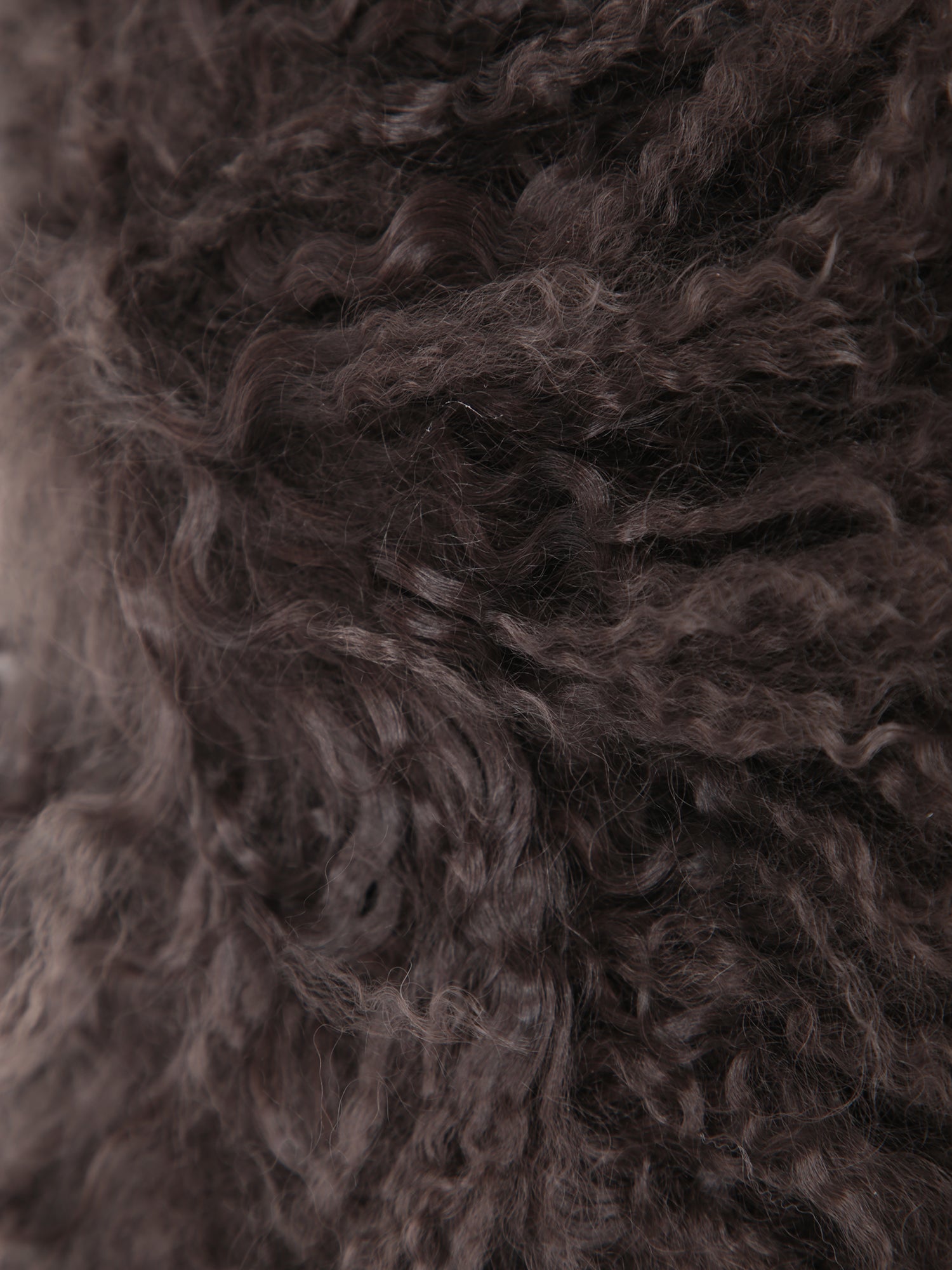 Luxurious scarf crafted from pure Mongolian lamb wool. Soft and voluminous fabric. Natural finish with deep cocoa hues.