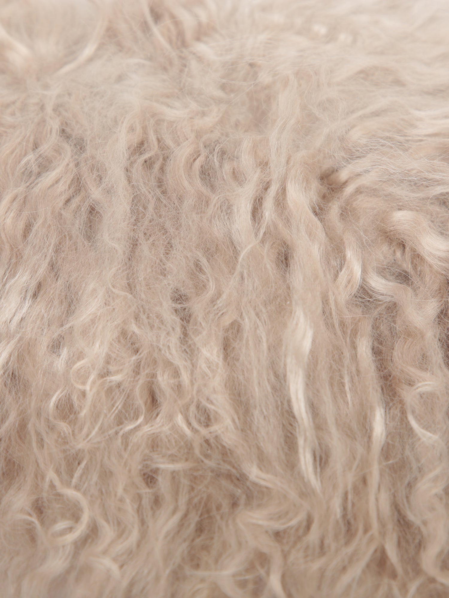 Luxurious Mongolian lamb fur scarf. Natural ficelle color. Features a soft and voluminous fur-like finish.