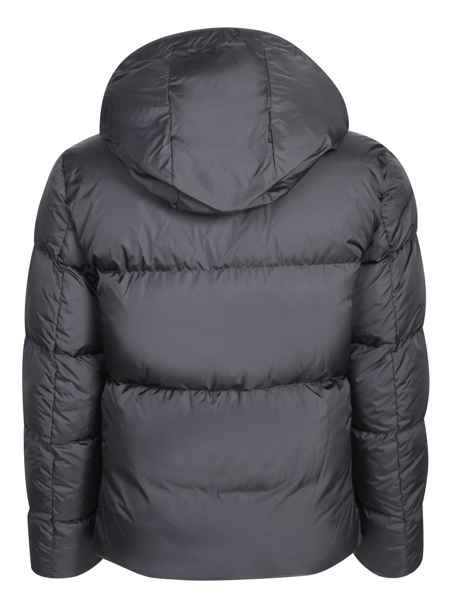 High neck. Drawstring hood. Logo on the hood. Front zip fastening. Long sleeves. Logo patch to the sleeve. Two side zip fastening pockets. Drawstring edges. Padded. Color: black