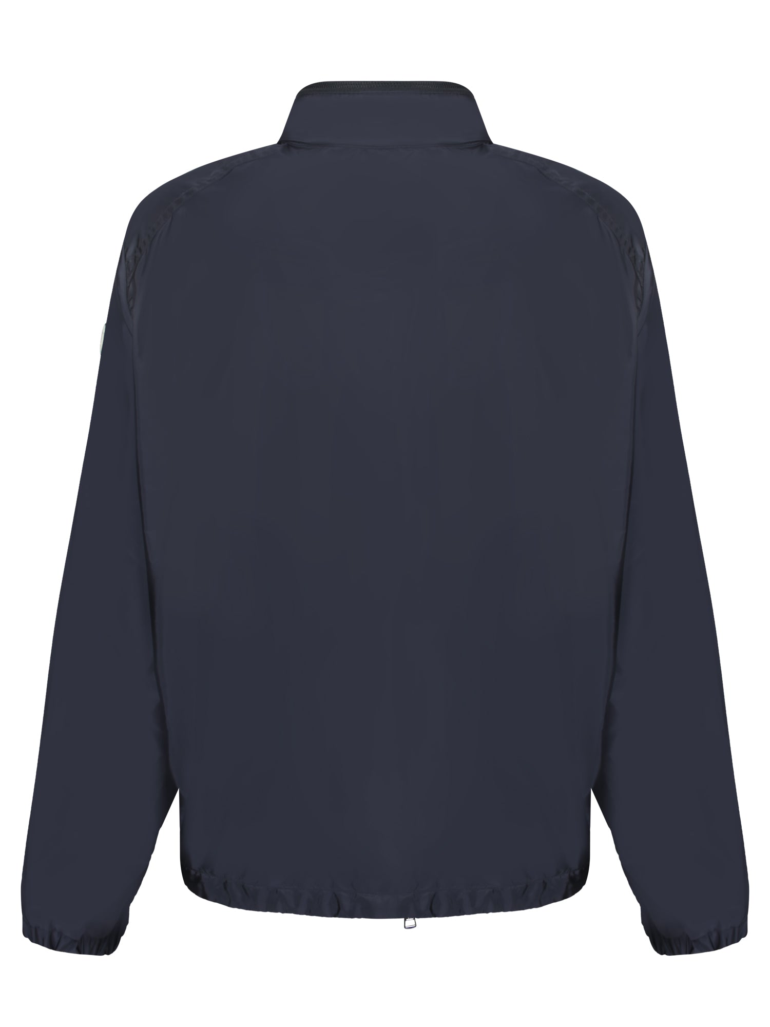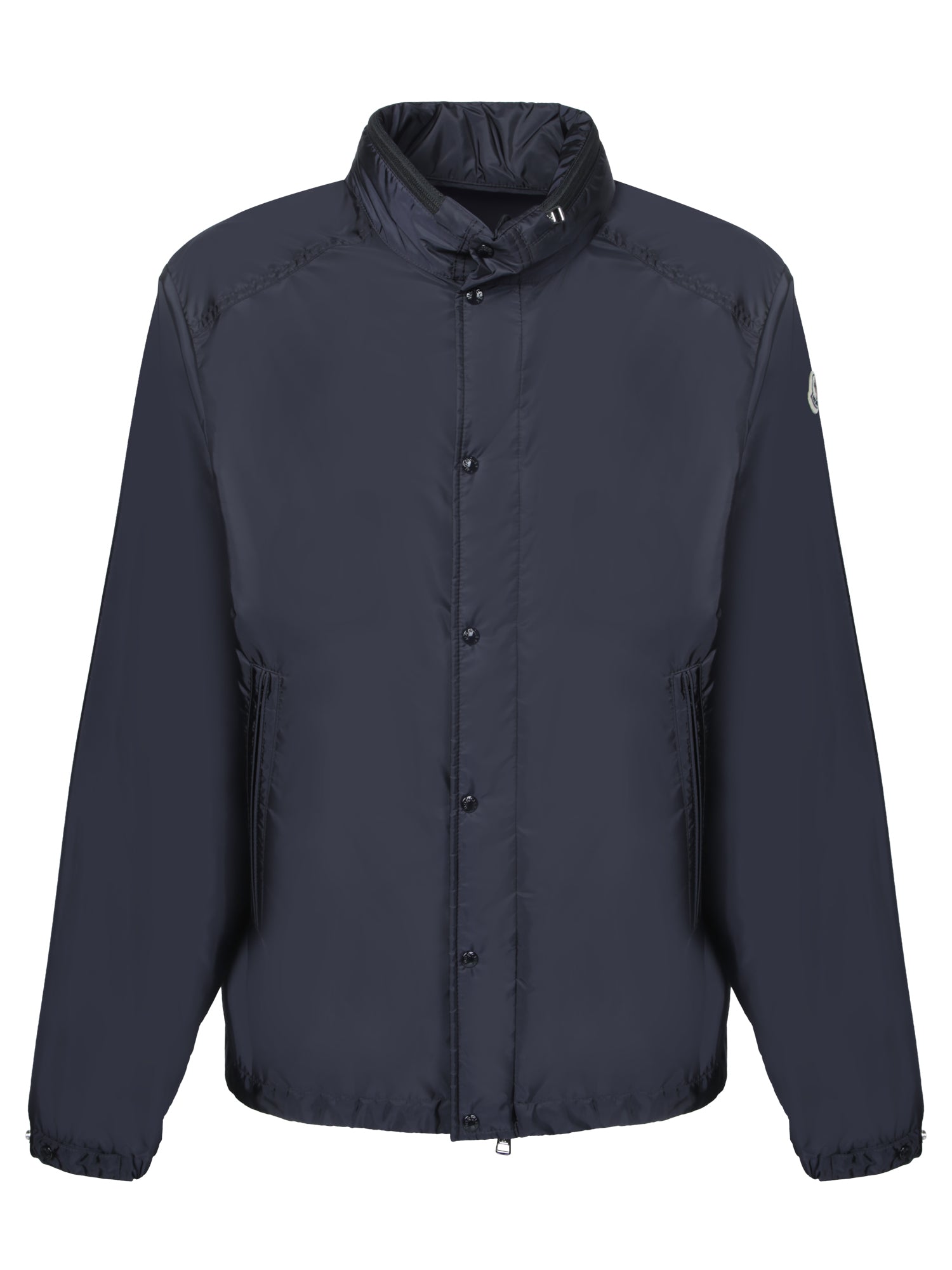 Crafted from high-quality technical fabric, this Moncler jacket features a high neck with an adjustable hood, perfect for shielding against the elements. The sleek navy blue hue and minimalist design make it a staple for any men's wardrobe across seasons.