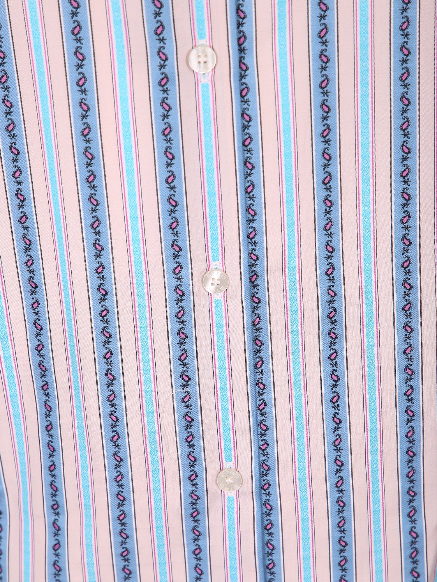 Fine silk. Vertical stripe print. Classic collar, button closure.