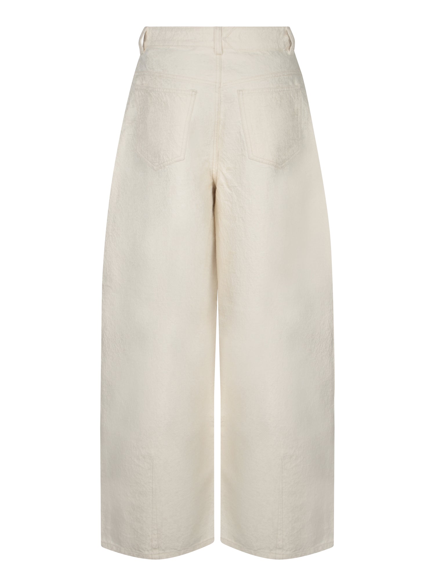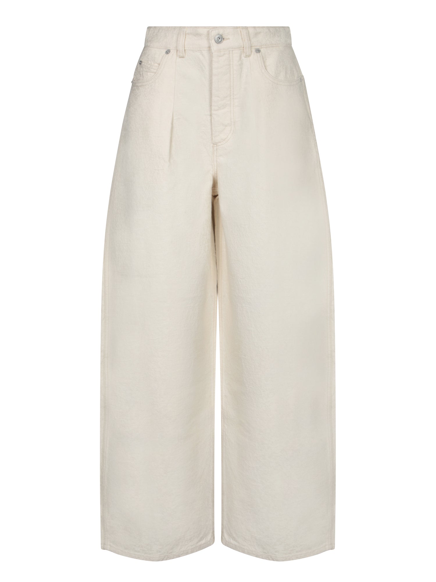 High-waisted white denim jeans. Featuring a wide-leg and straight cut. Front button closure.