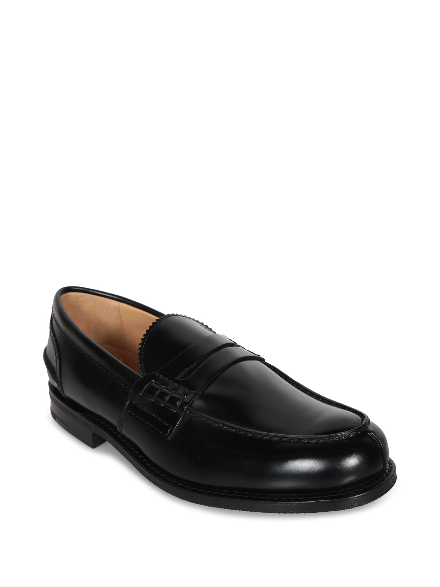Glossy leather loafer. Slip-on style. Rubber sole.