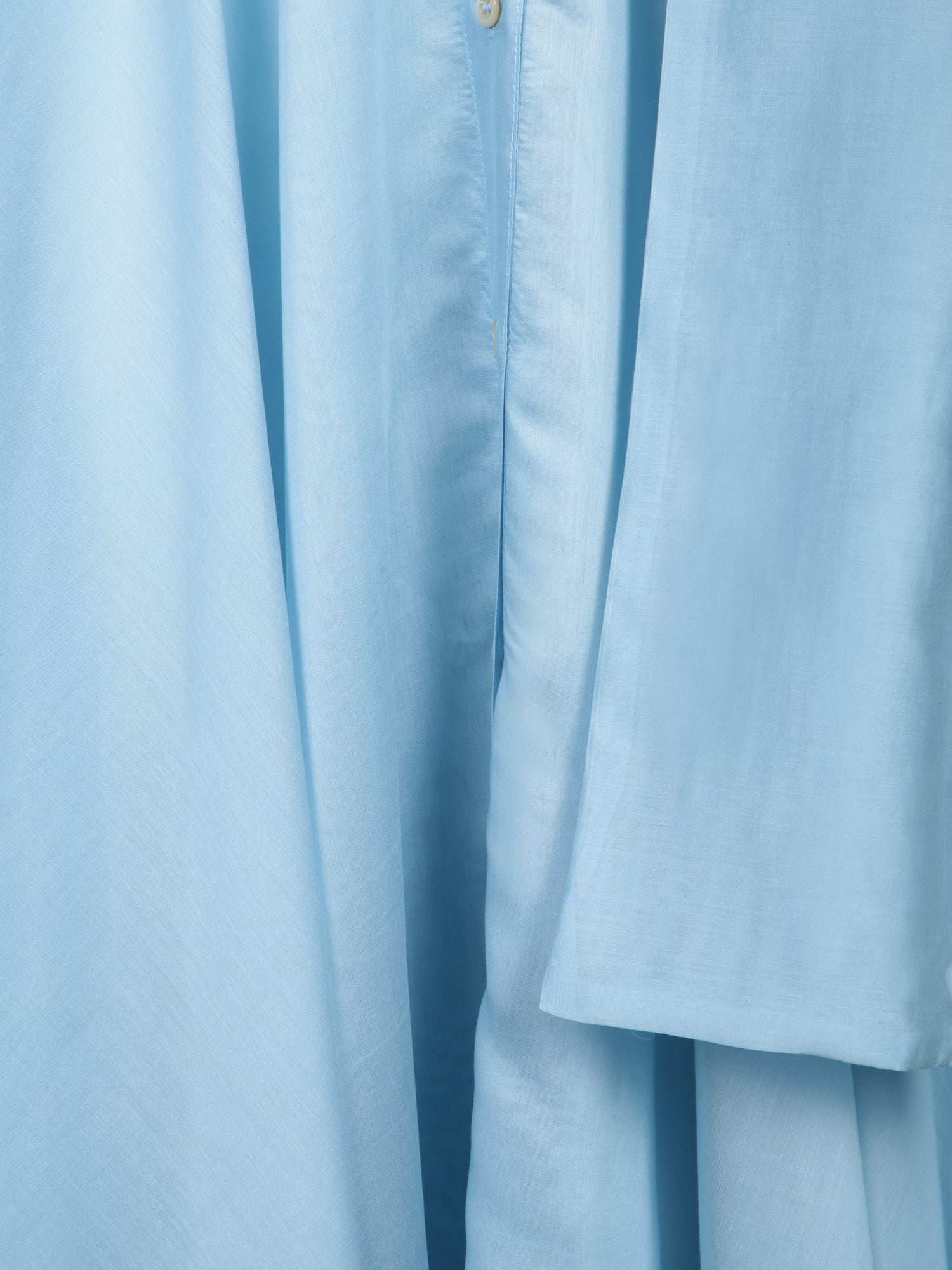 This elegant periwinkle blue solid midi shirt dress strikes a perfect balance between comfort and sophisticated style. Features a belt that accentuates the waistline and an asymmetric hem for a modern touch.