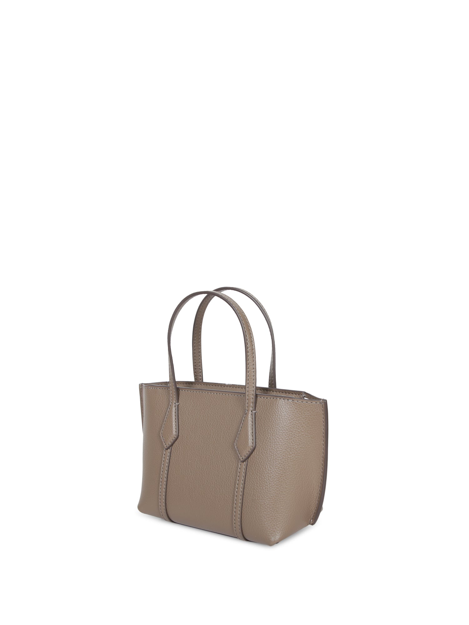 Pebbled leather structure. Applied internal pocket. Double handles and adjustable, detachable strap.