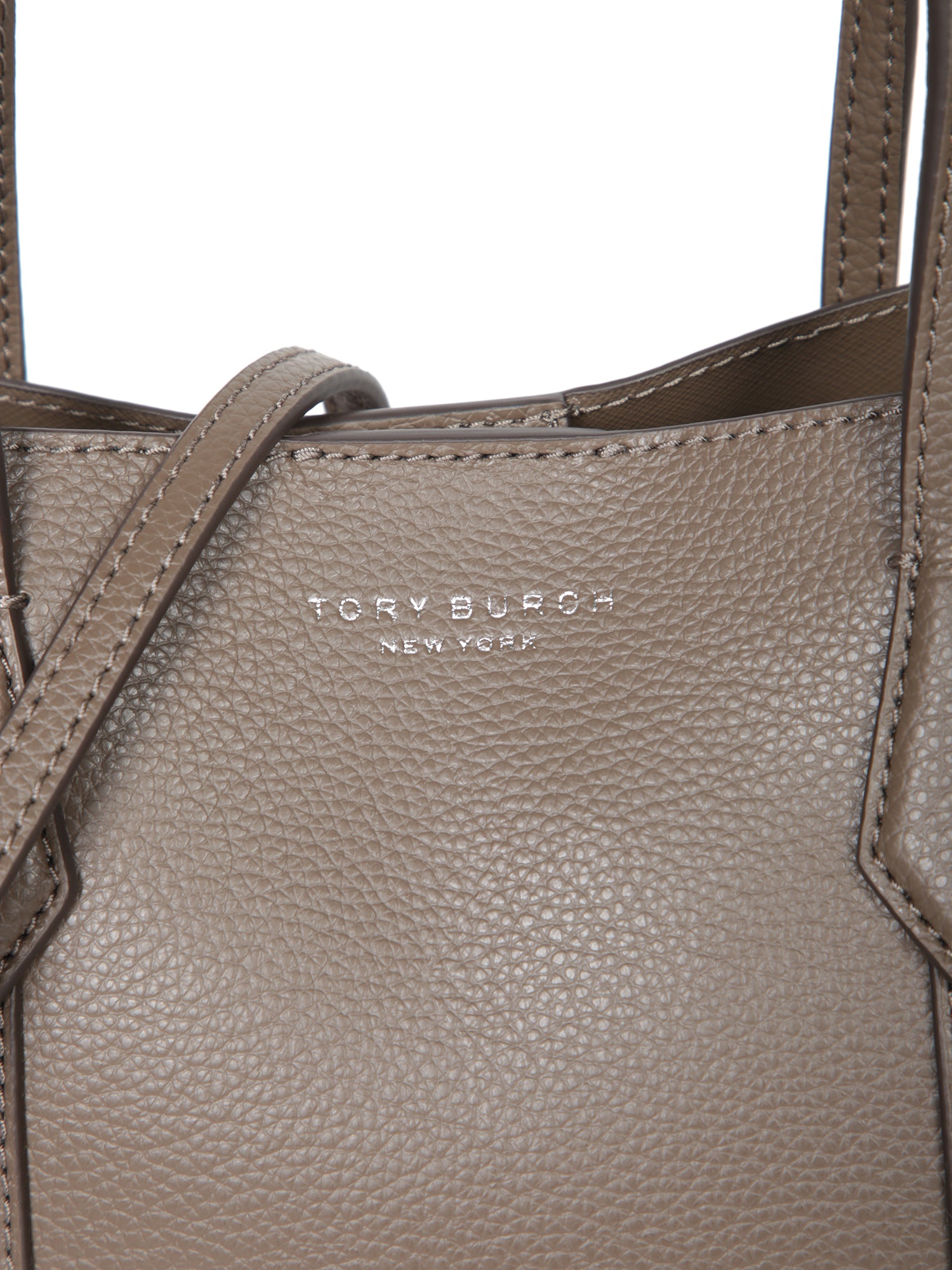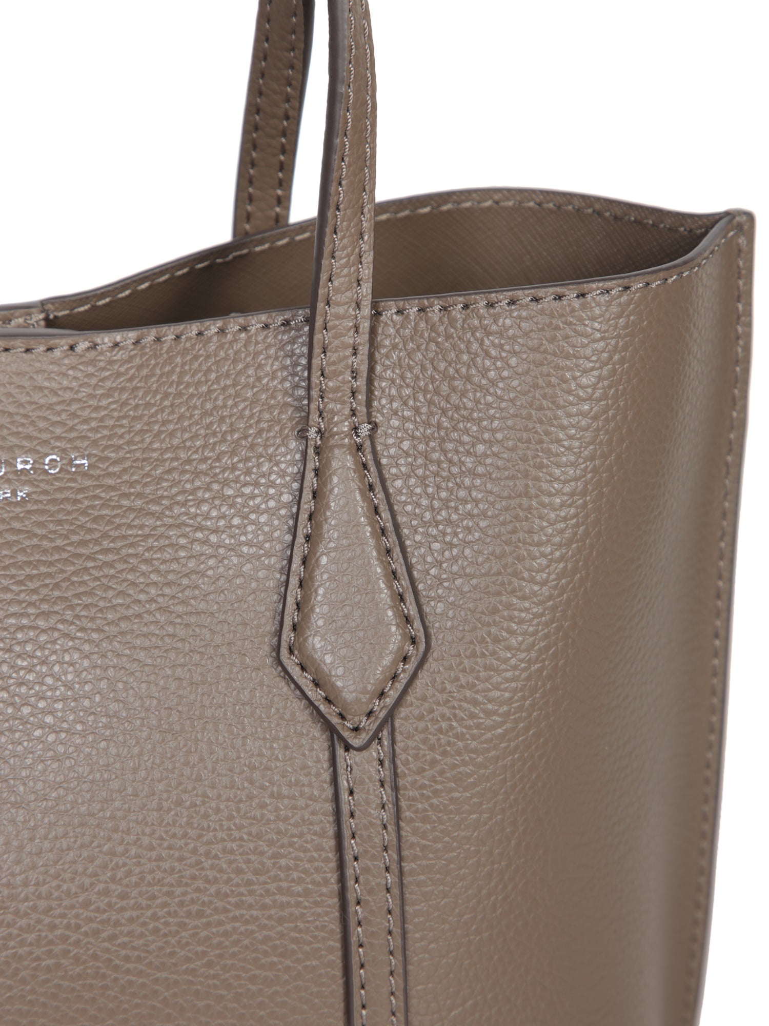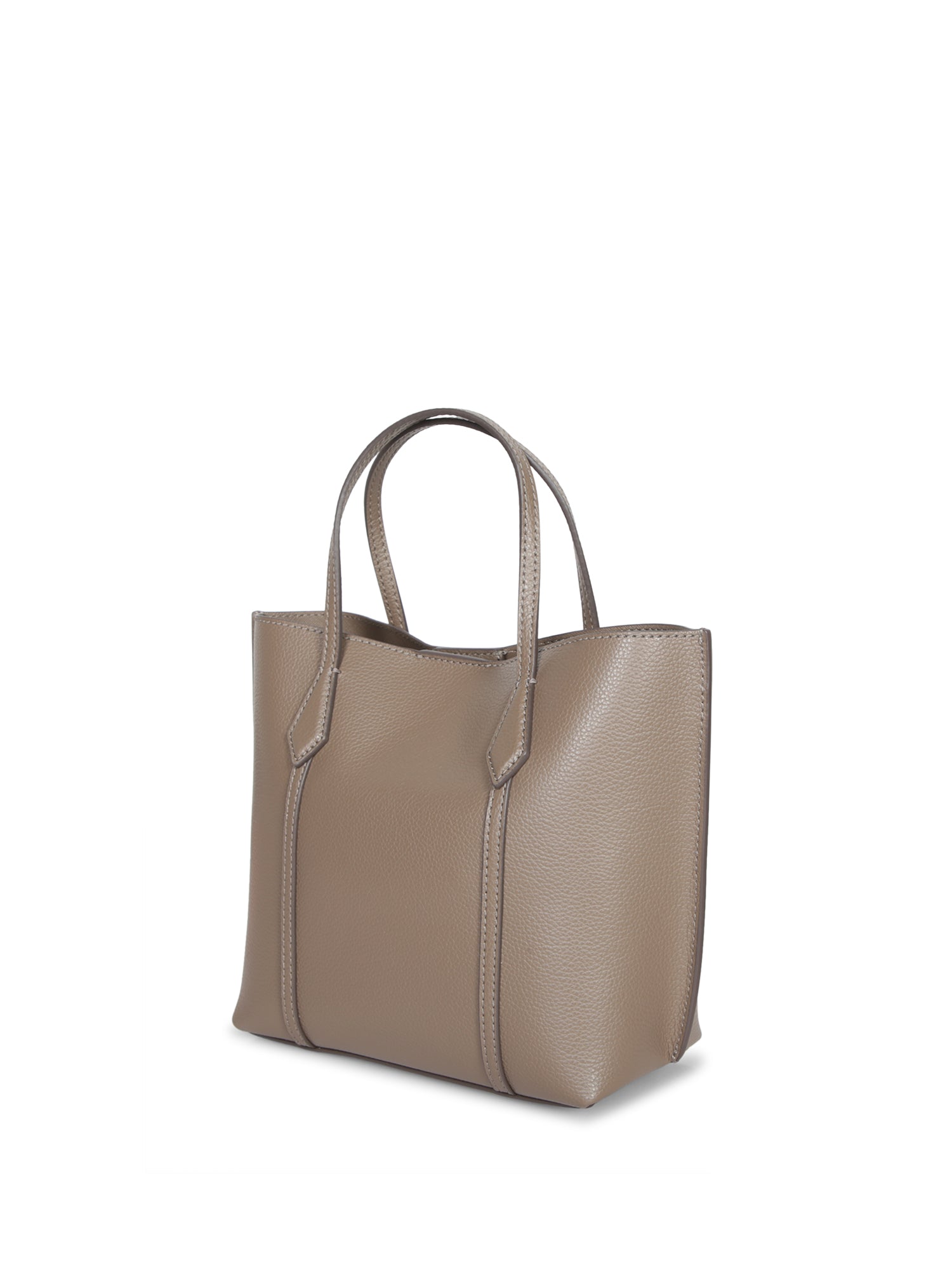 Leather bag with top handles. Magnetic closure. Contrast stitch details.