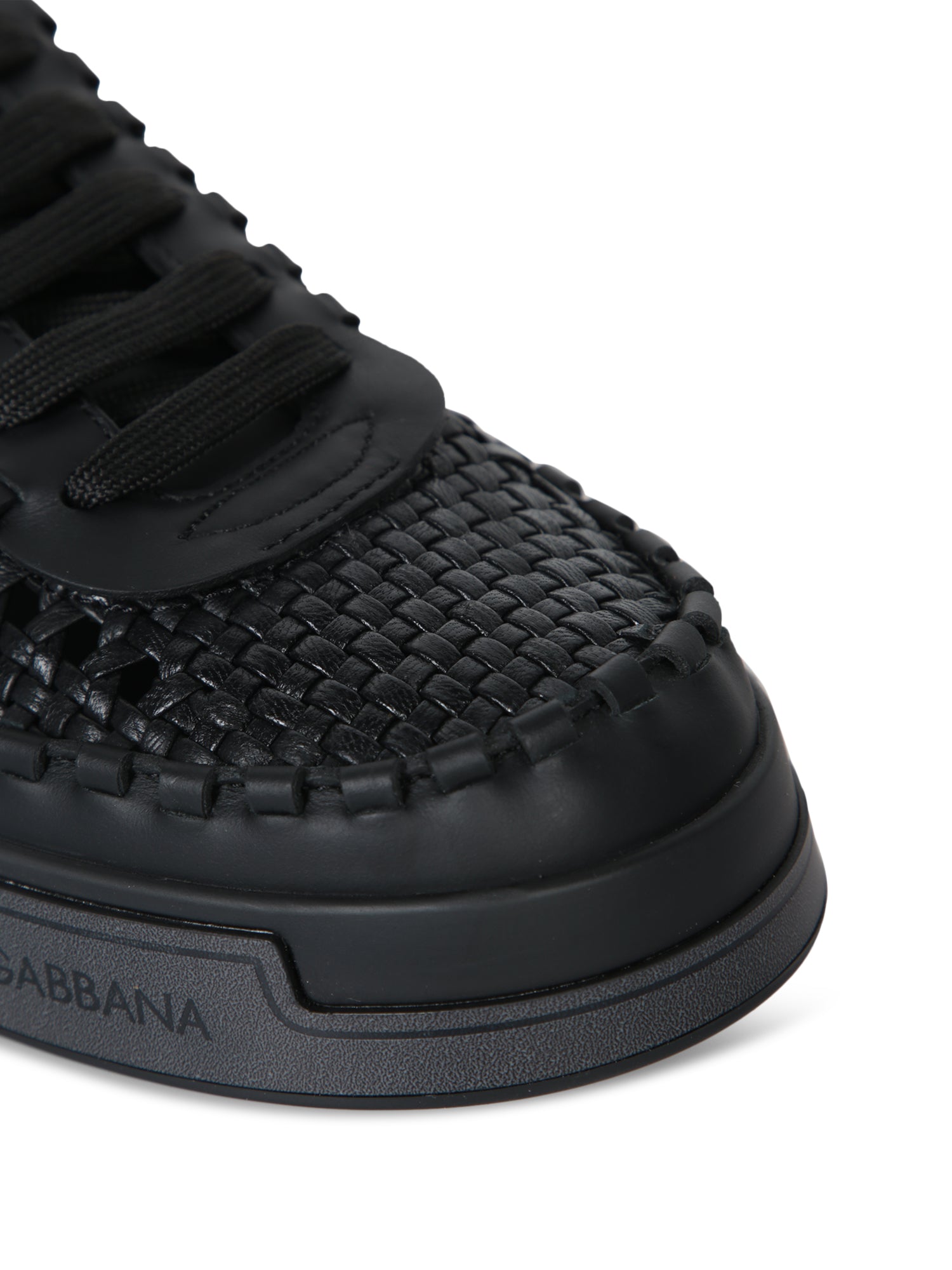 Explore timeless elegance with Dolce & Gabbana's Portofino Black Oxford Shoes; featuring an intriguing woven design and logo details, these shoes elevate a distinctive look.