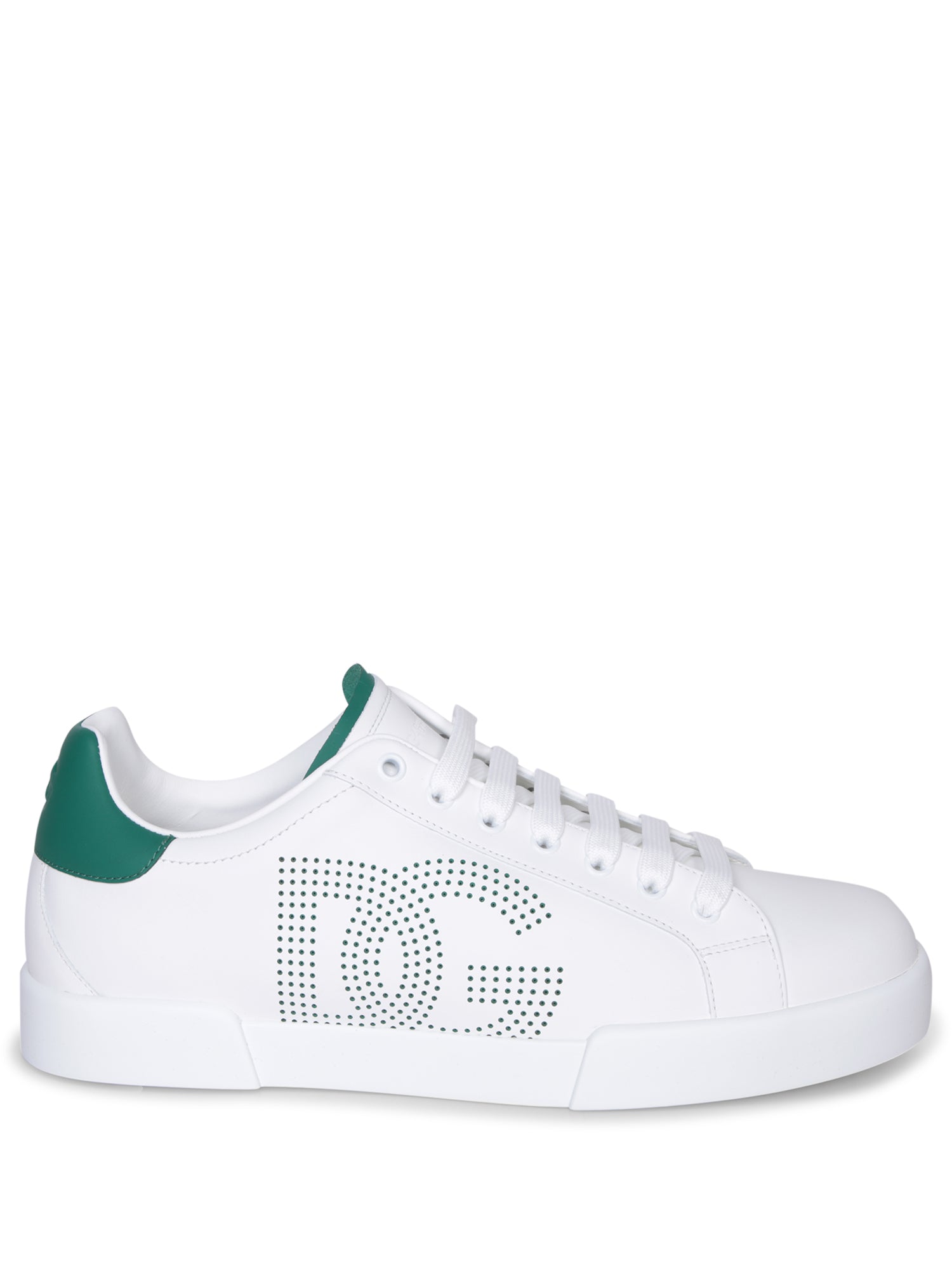 Smooth leather sneakers. Contrasting DG logo. Green details on the back.