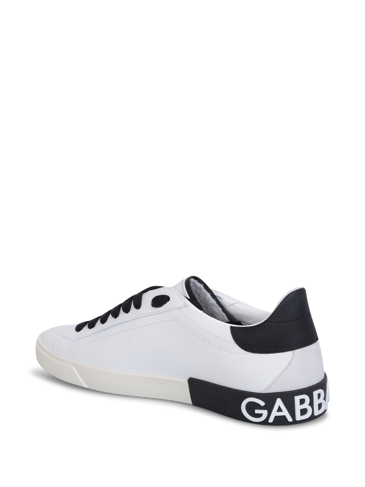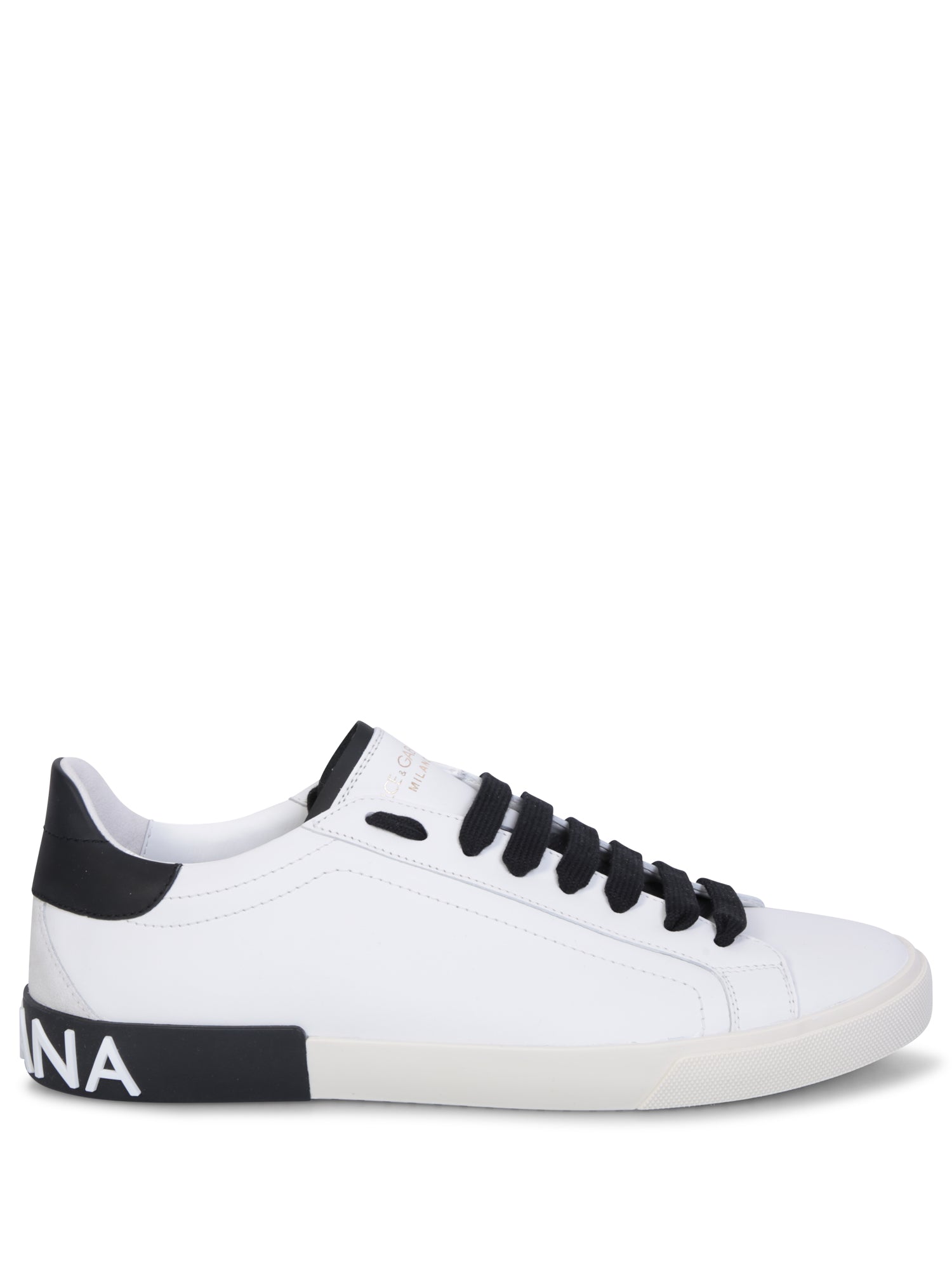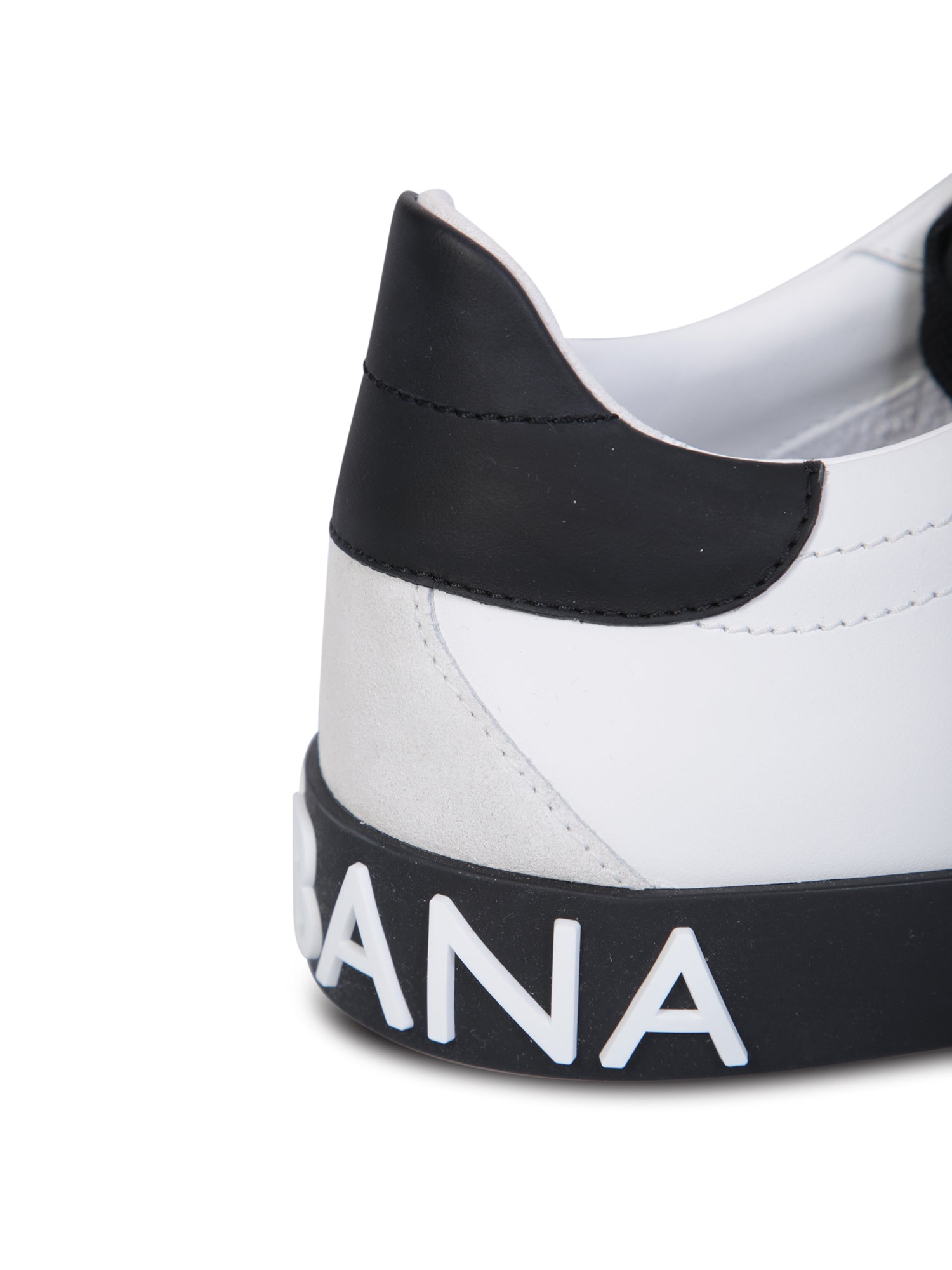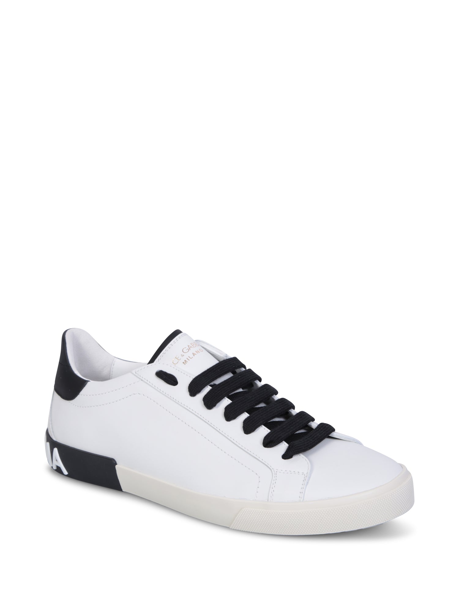 Portofino white/ black sneakers by Dolce&Gabbana; made of nappa calfskin with contrasting stitching and featuring a casual design