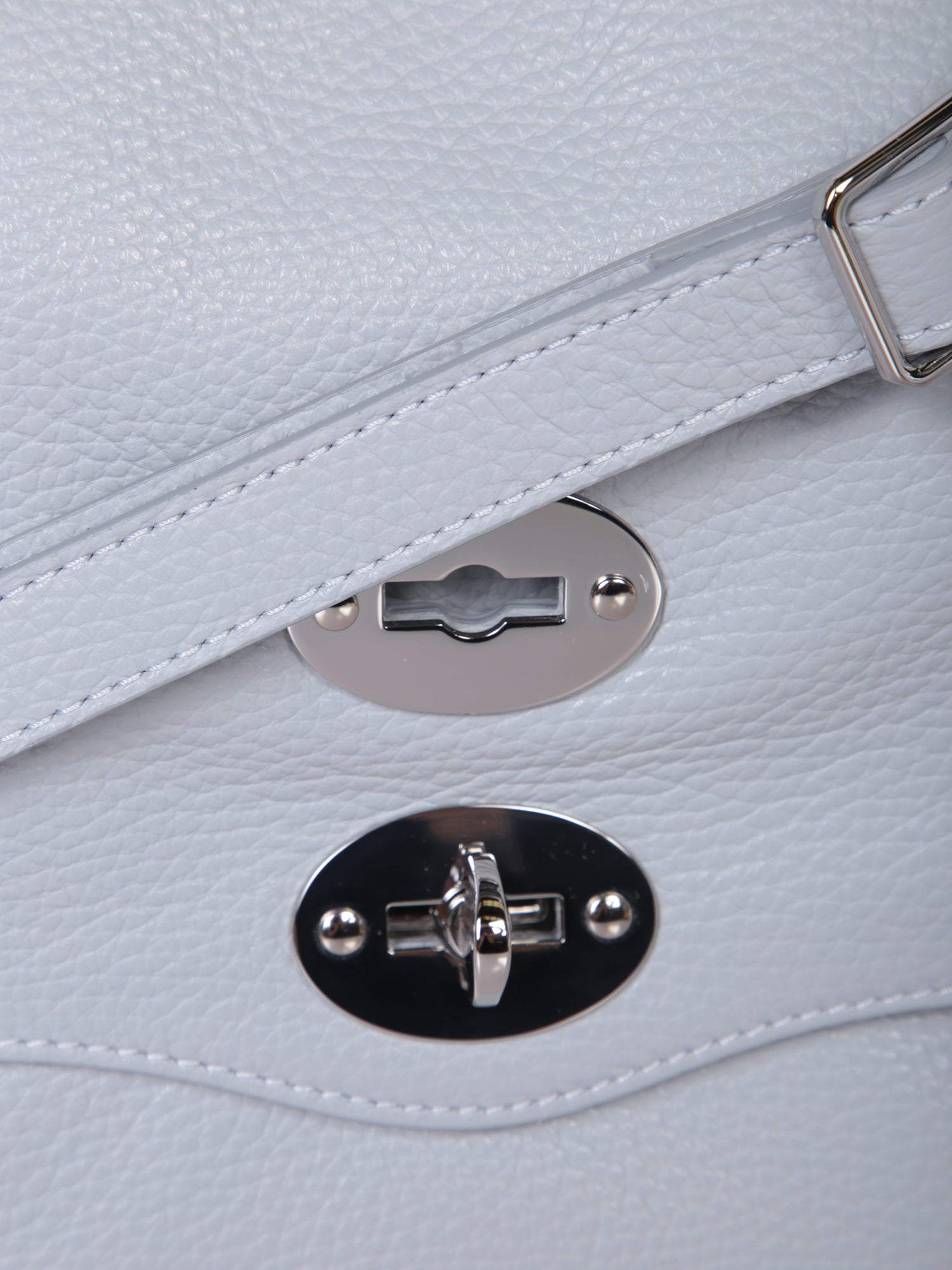 Made from high-quality leather. Adjustable and detachable shoulder strap. Flap closure with lock.
