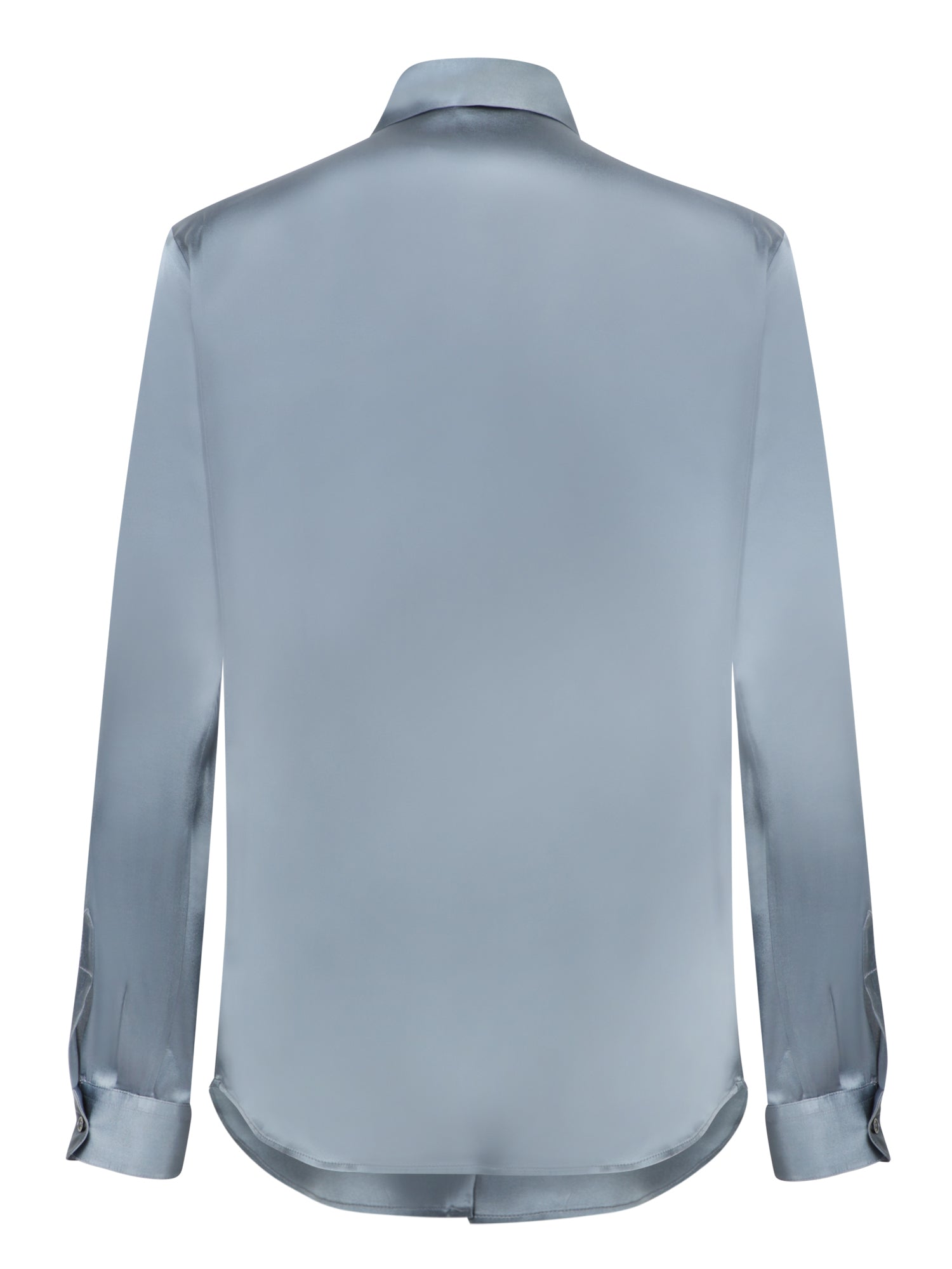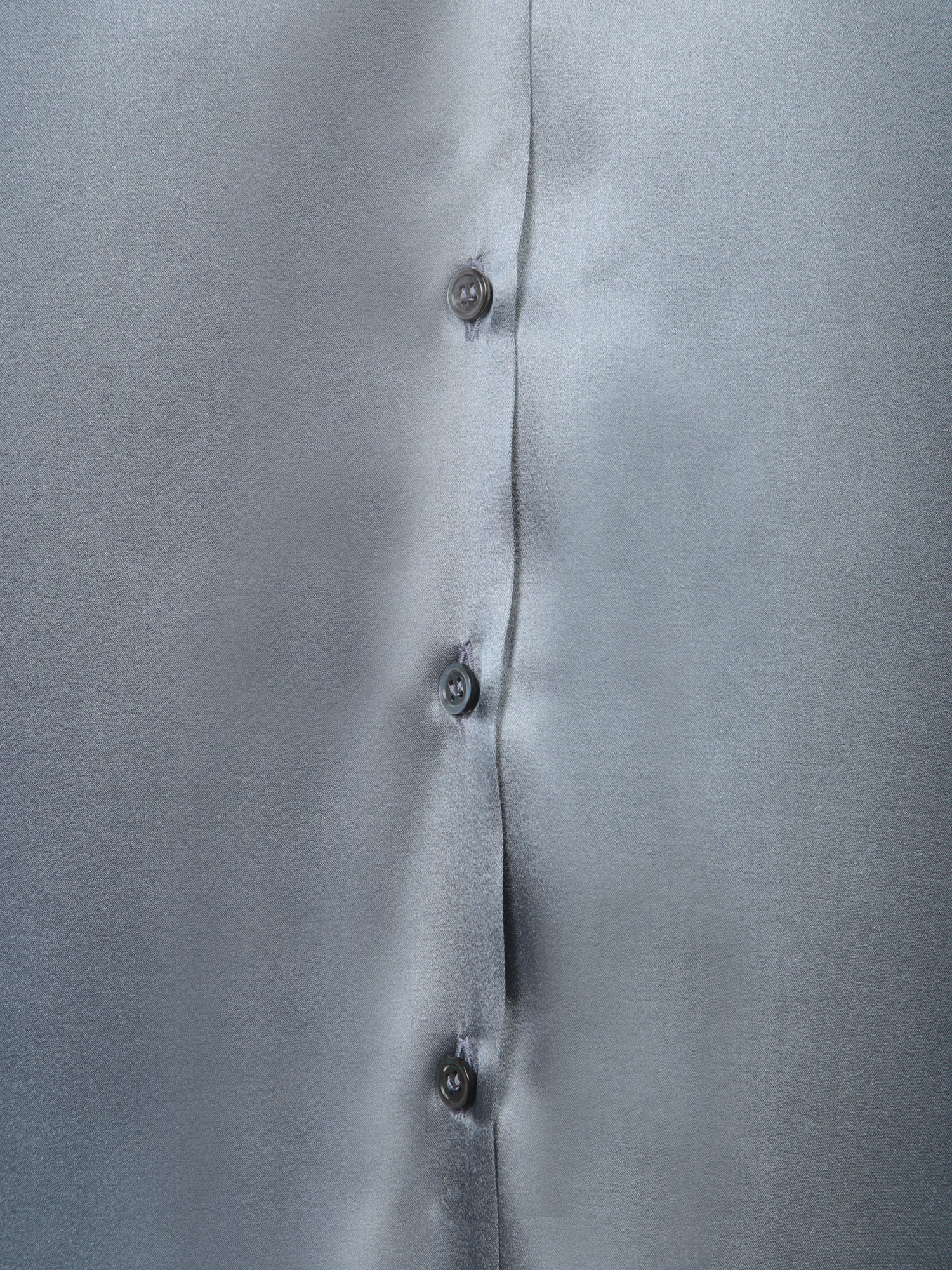 This elegant powder-hued silk shirt from Blanca Vita embodies minimalist sophistication with its flowing cut and meticulous tailoring details.