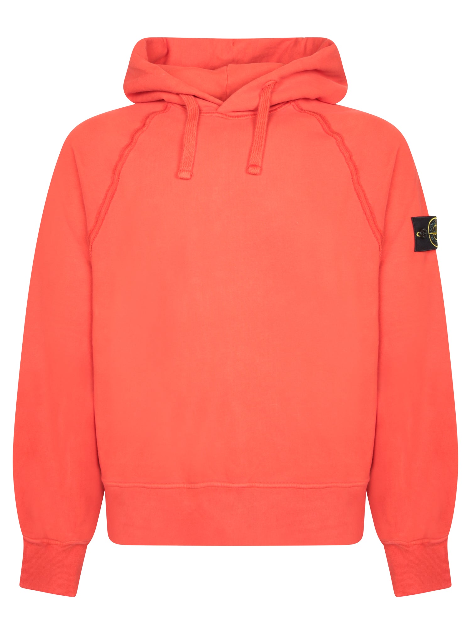 Crafted from a soft and durable fabric, this Stone Island hoodie stands out with its vivid red color and distinctive sleeve logo, perfect for a casual yet refined look.