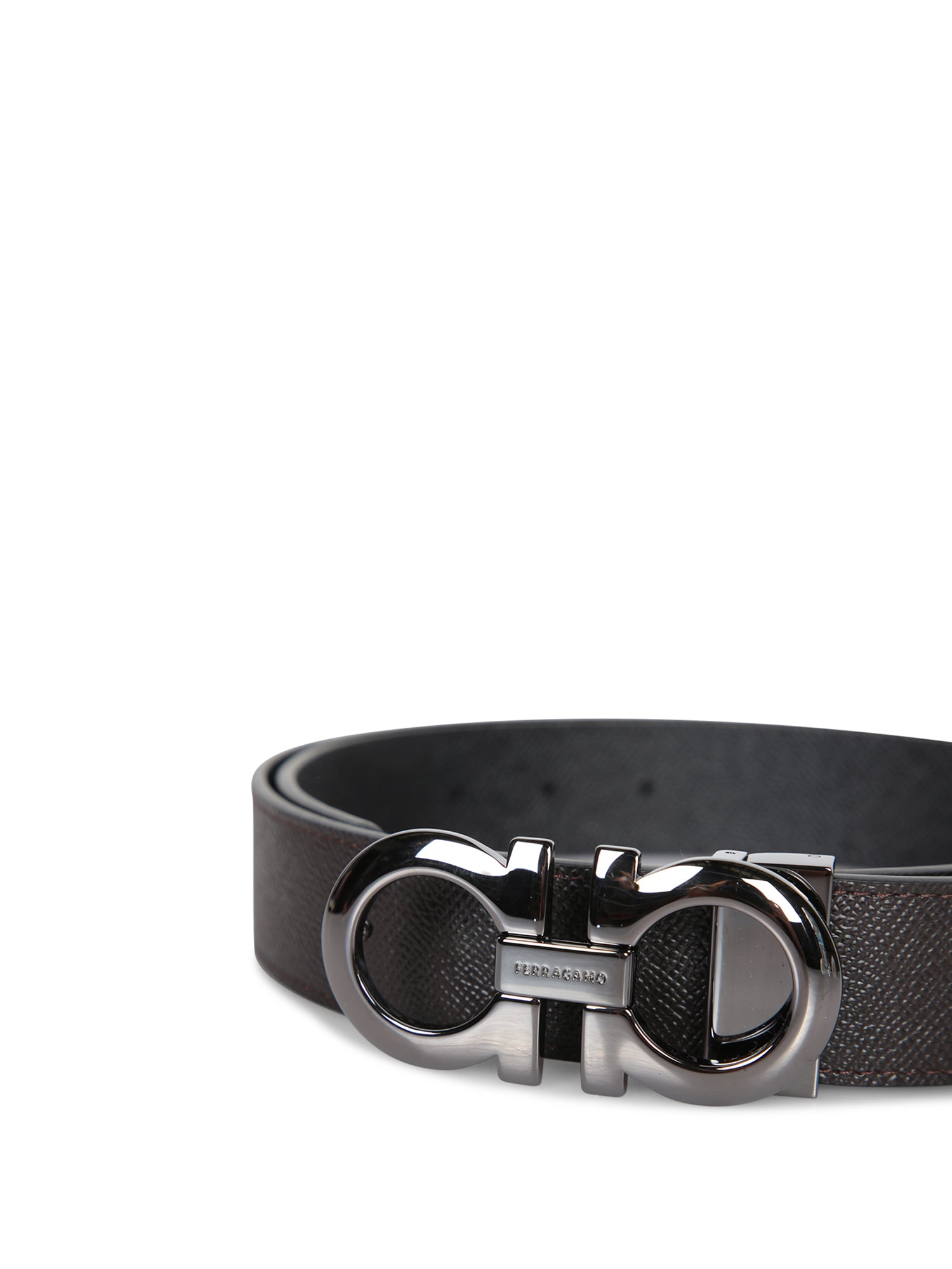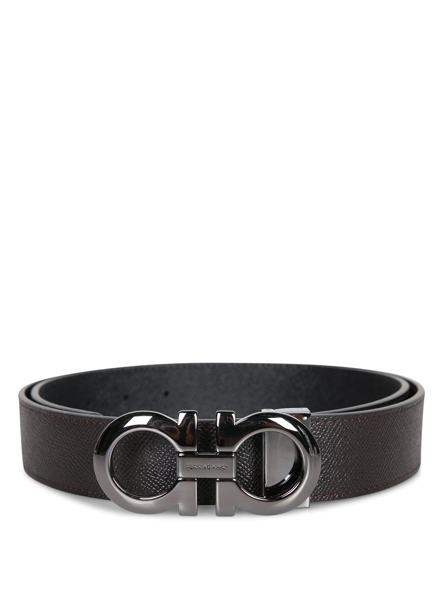 A stylish and versatile addition to anyone's wardrobe, this Ferragamo belt features finely textured leather and an iconic buckle that displays a refined chromatic duality.