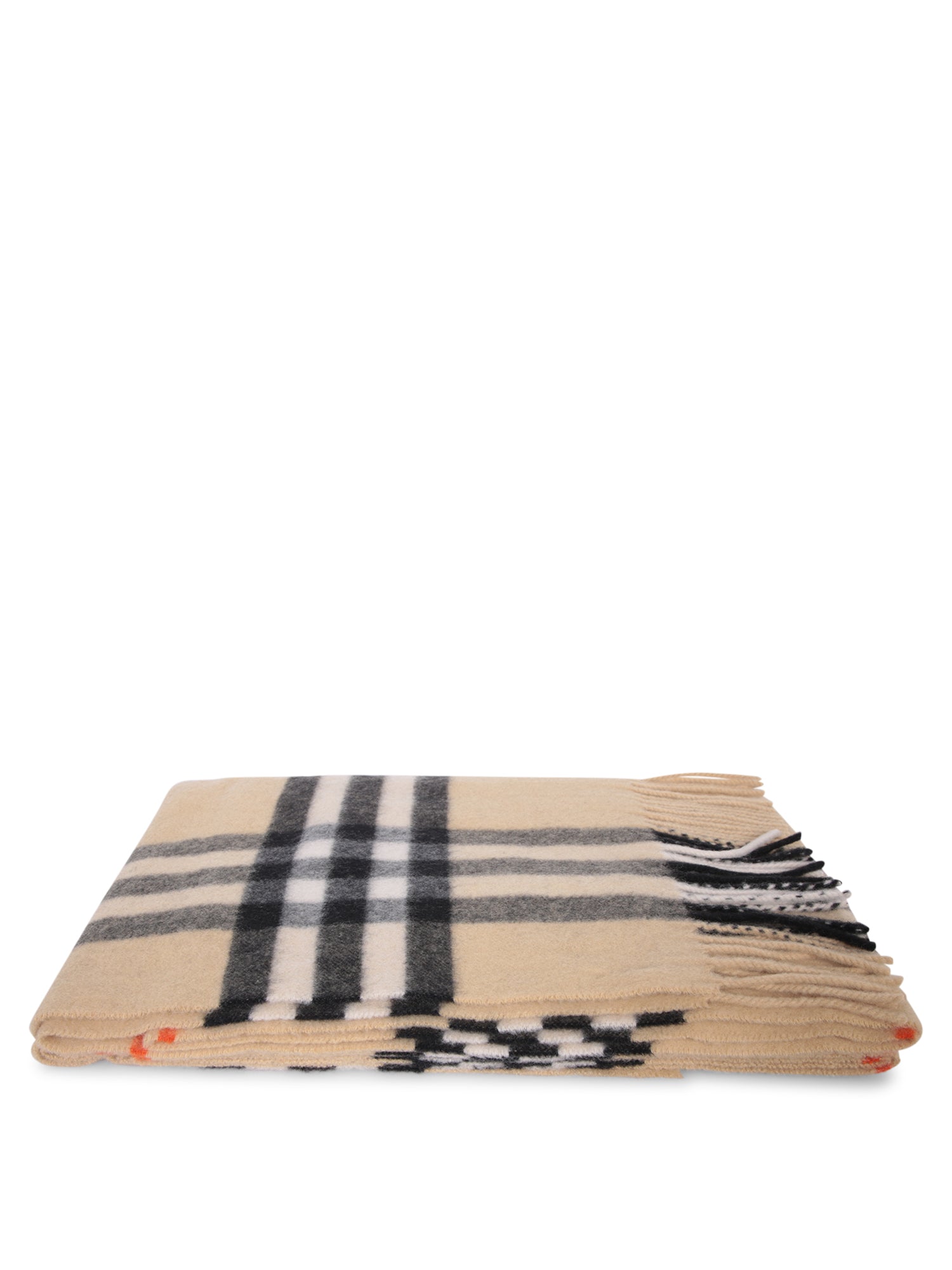 Pure cashmere scarf. Giant Check pattern. Fringed edges.
