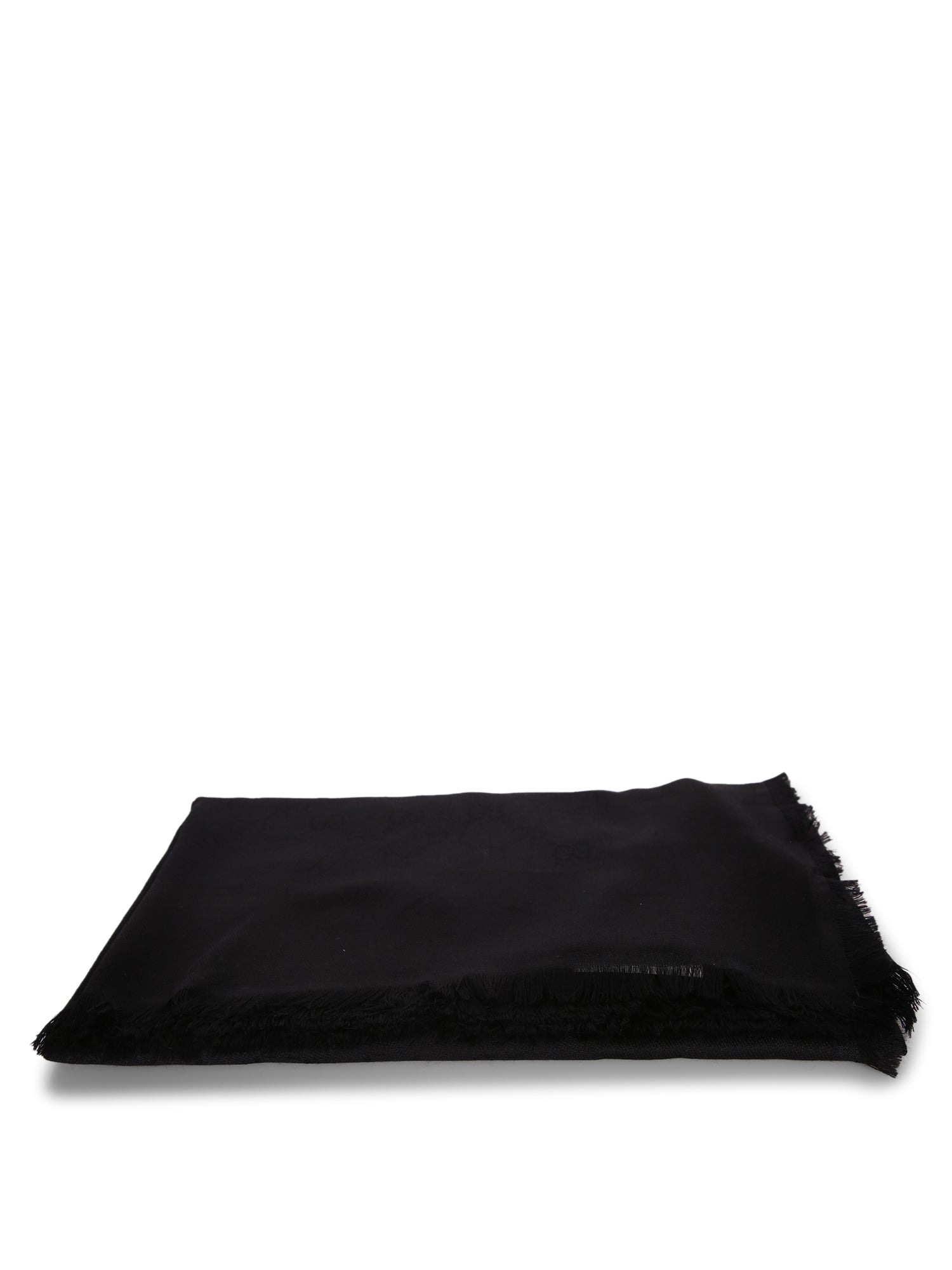 Square scarf. Frayed hem. Tonal Gucci logo.
