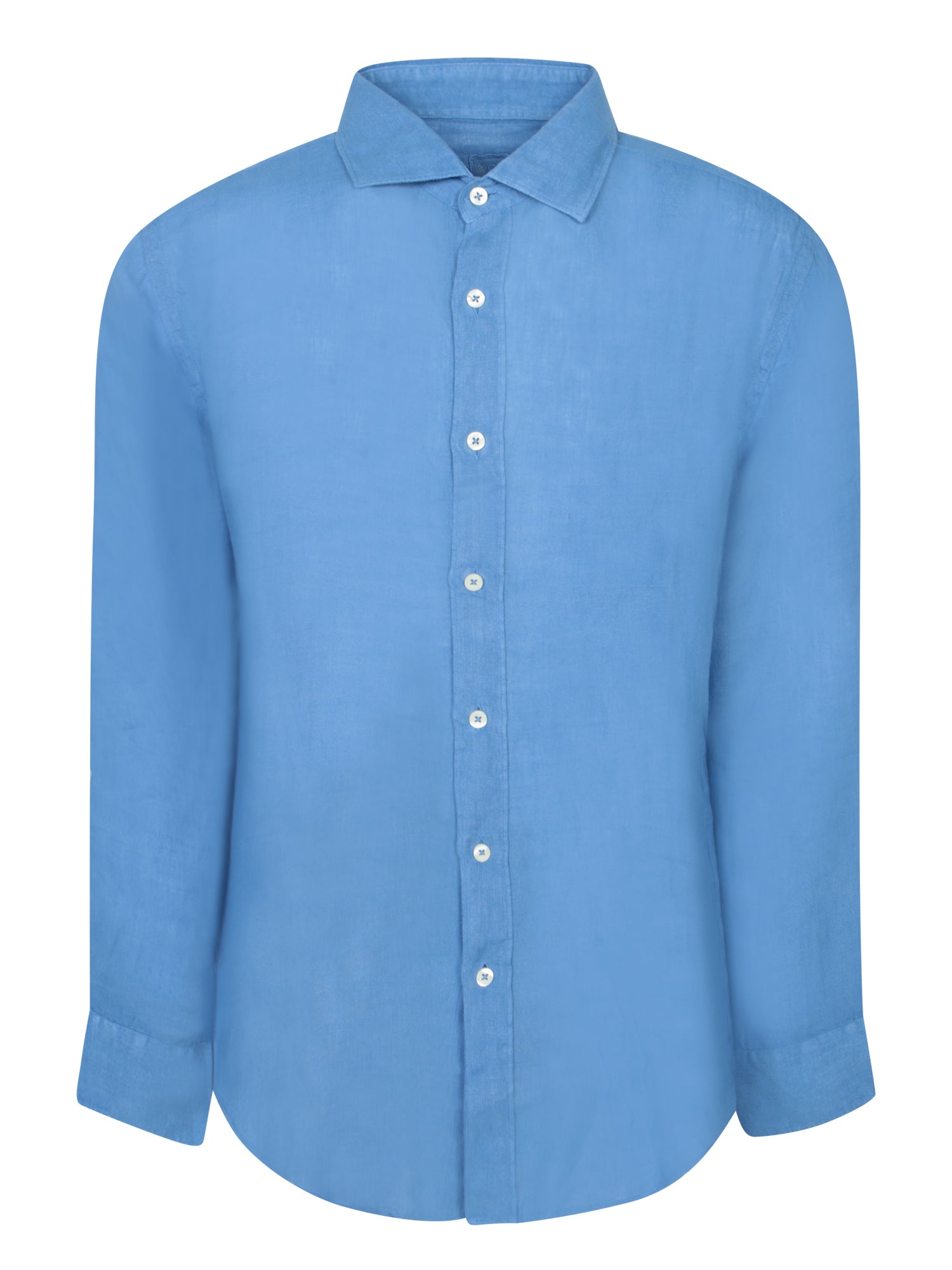 This 120% LINO slim fit shirt exhibits tailor-made elegance with its high-quality linen fabric and faded indigo color.