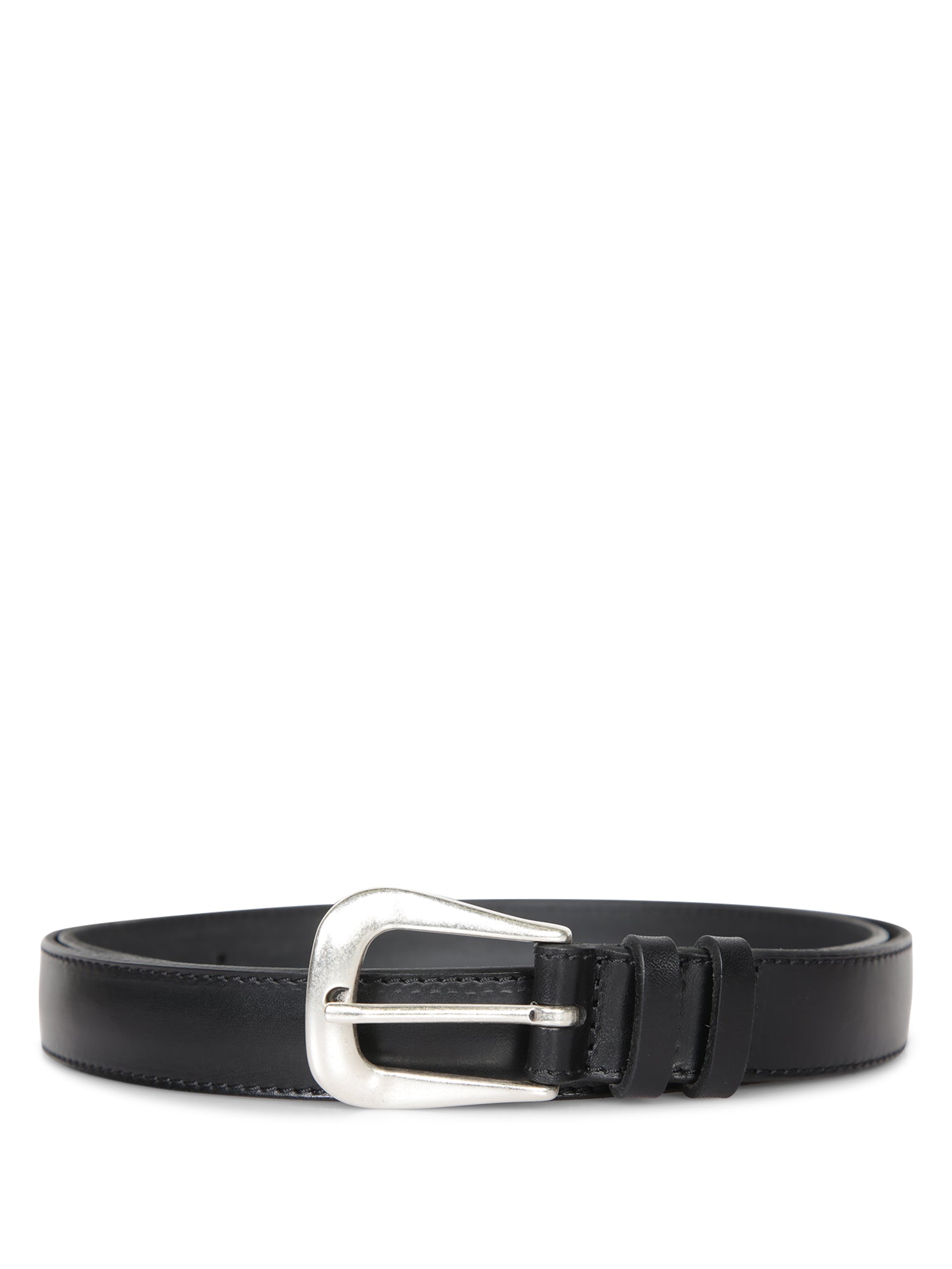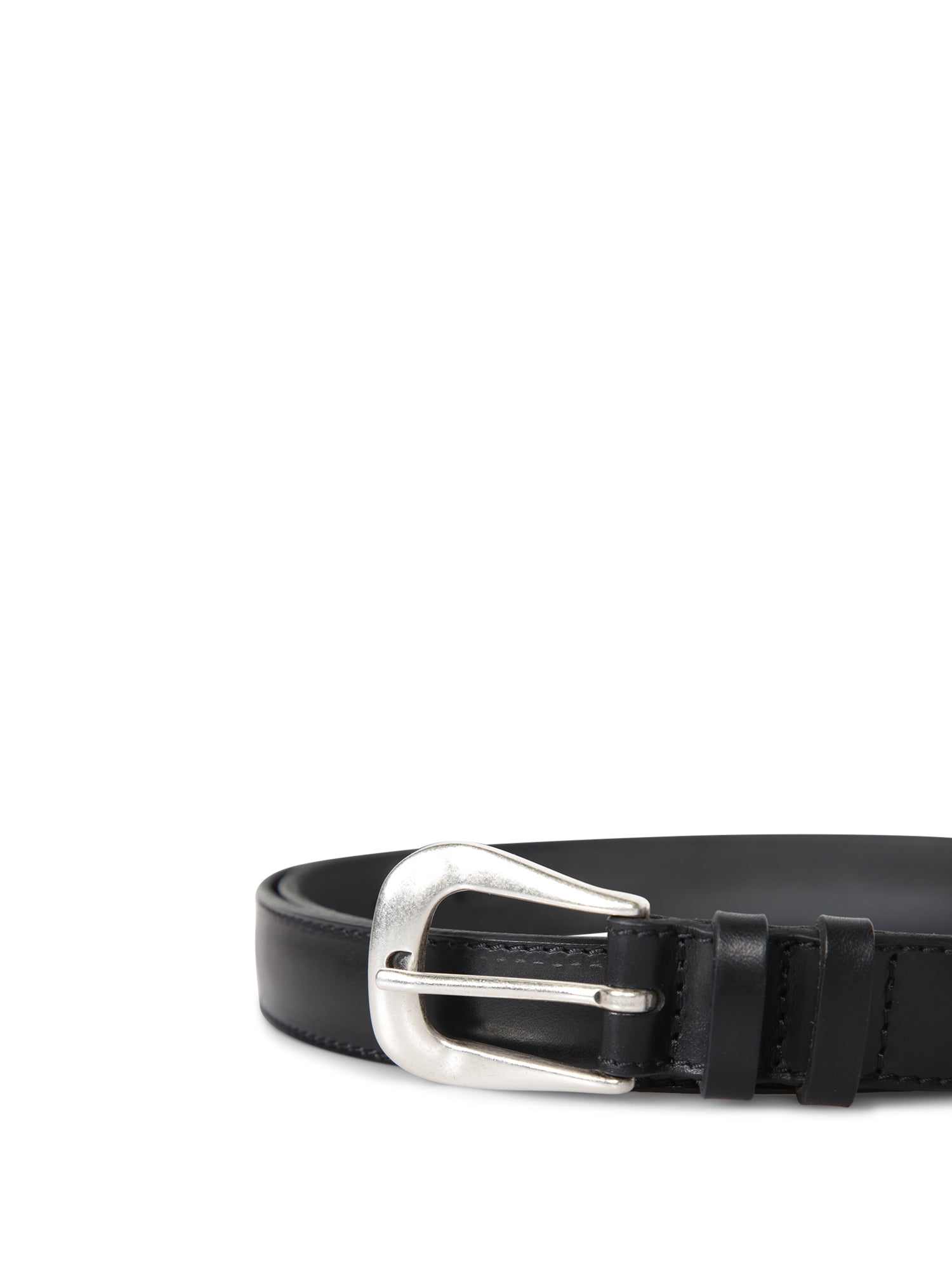 This sleek Orciani black leather belt features an elegant silver buckle that adds a distinctive touch to your everyday style.