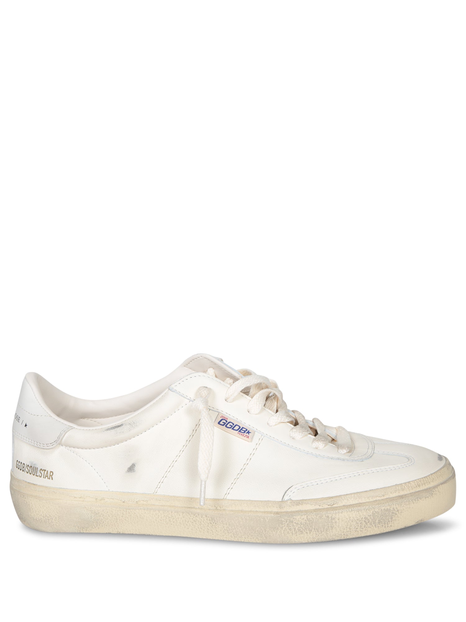 These Golden Goose Soul Star sneakers in white nappa leather blend comfort with sophisticated style. Featuring the brand's signature logo and a pre-distressed sole, they are perfect for adding an edge to any everyday outfit.