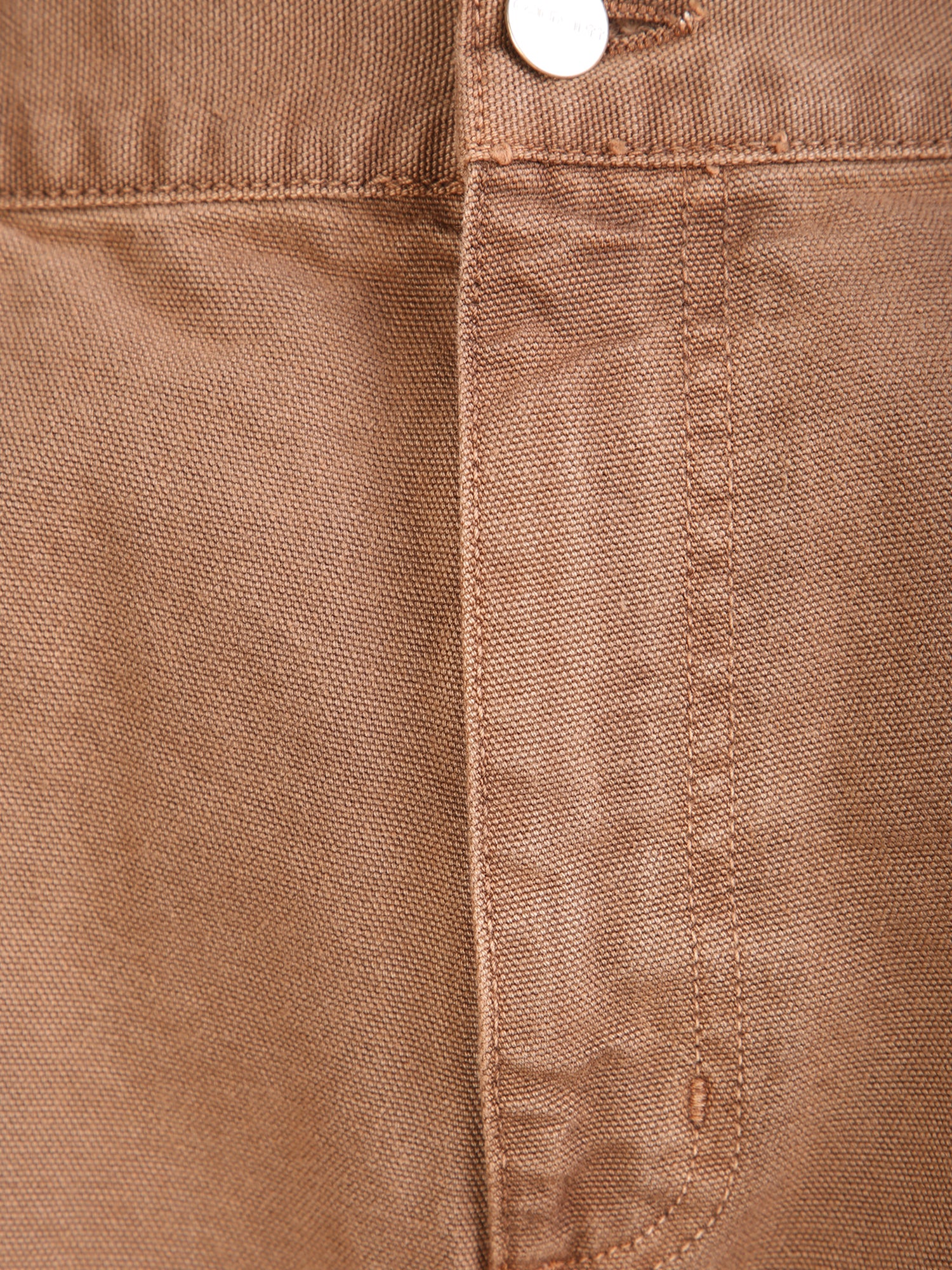 Mid-rise. Belt loops. Logo patch to the rear. Front button and zip fastening. Two side inset pockets. Two rear patch pockets. Straight cut. Color: camel