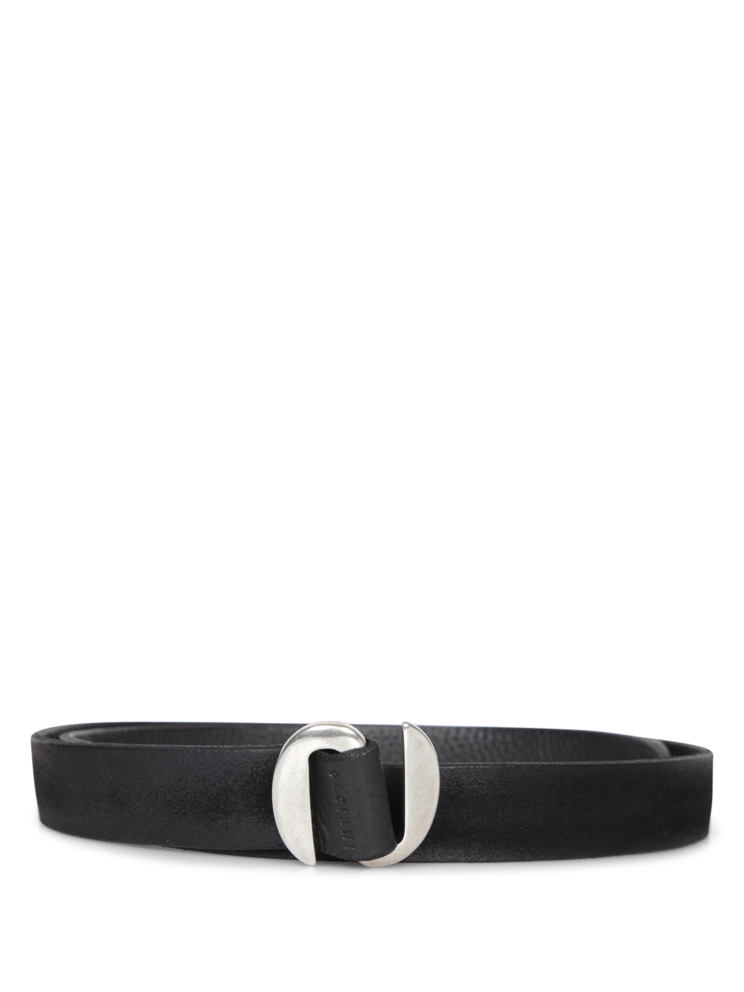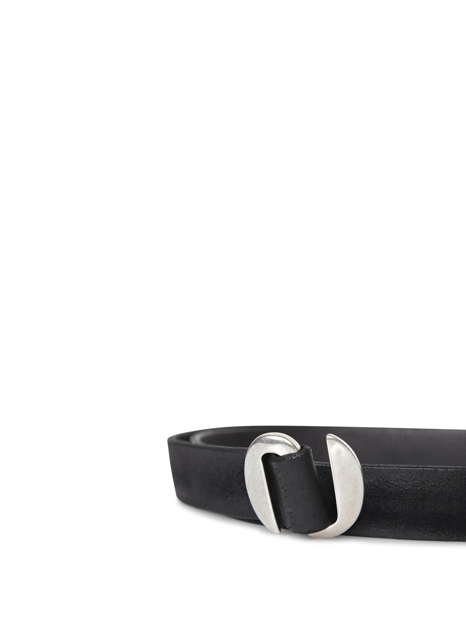 Suede belt with silver metal buckle. Minimalist design. Made in Italy.