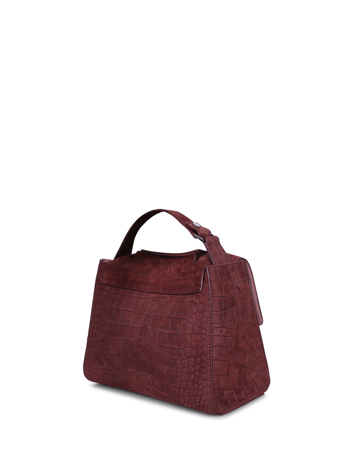 Sveva S Croc-Effect Nubuck Bag in Chianti
