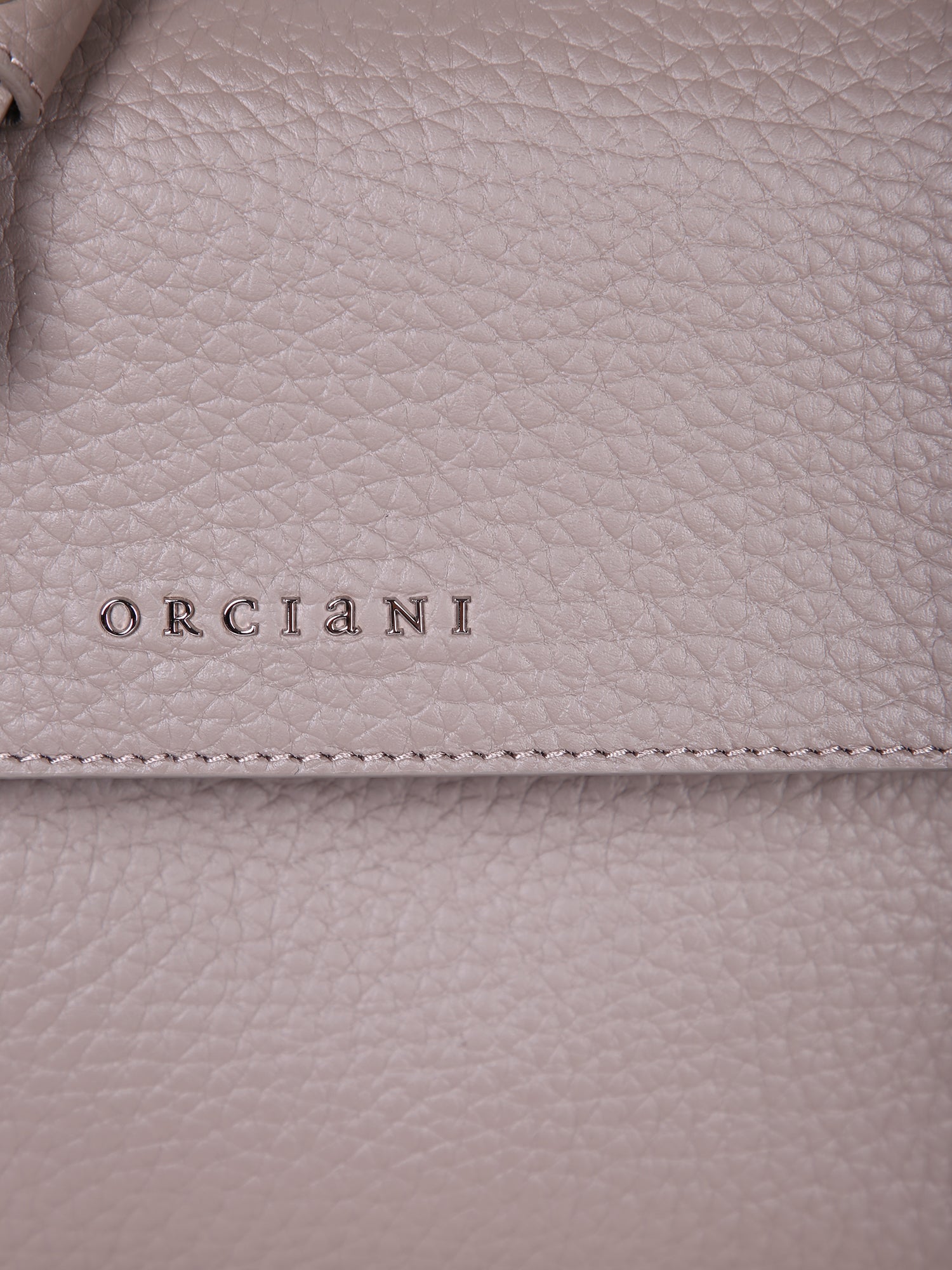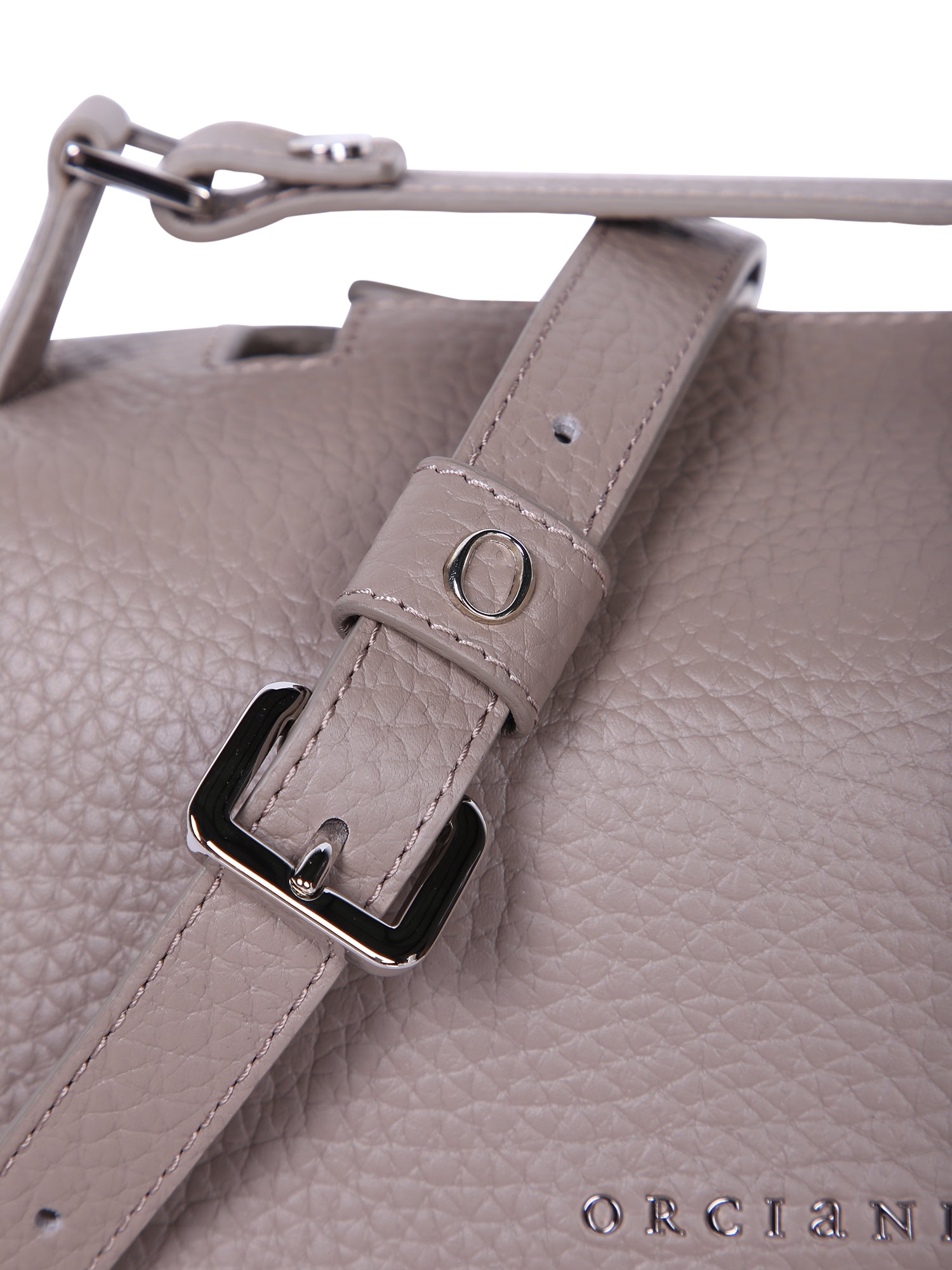 Hammered calfskin bag with adjustable and removable shoulder strap. Magnetic buckle closure.