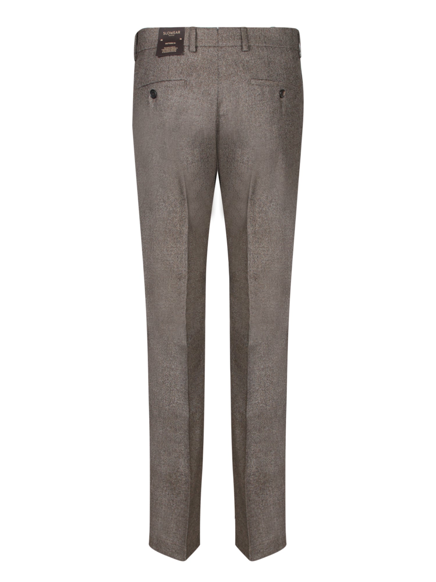 Tapered fit design. Zip and button closure. Side and back pockets.