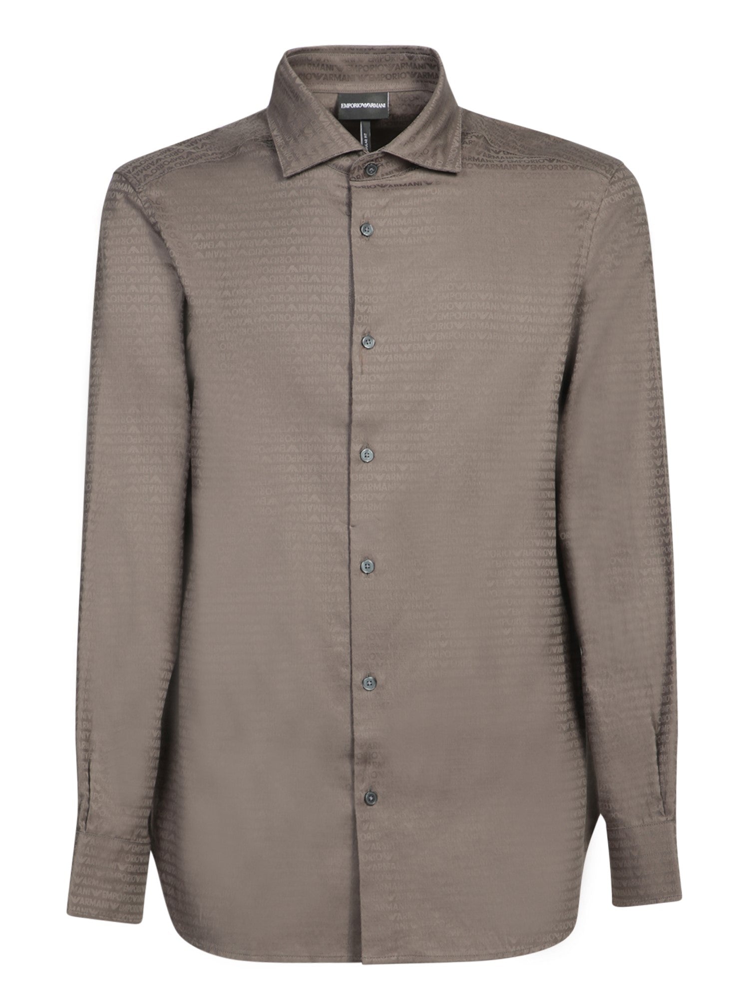 Long sleeve shirt in jacquard fabric with all-over logo print. Classic collar and front button closure.