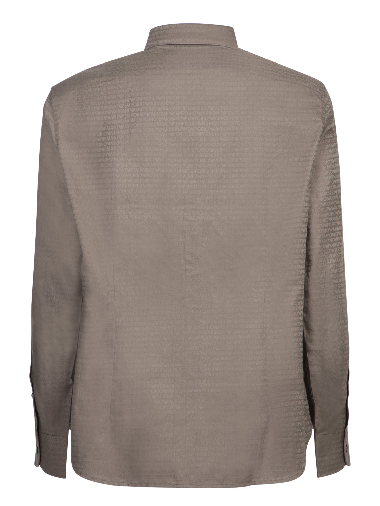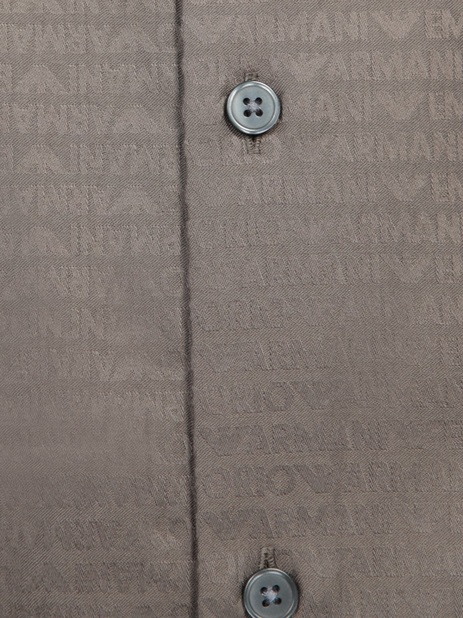 This Emporio Armani shirt features a distinctive all-over logo print on jacquard fabric, providing a refined balance between elegance and contemporary style. Perfect for a sophisticated look on any occasion.