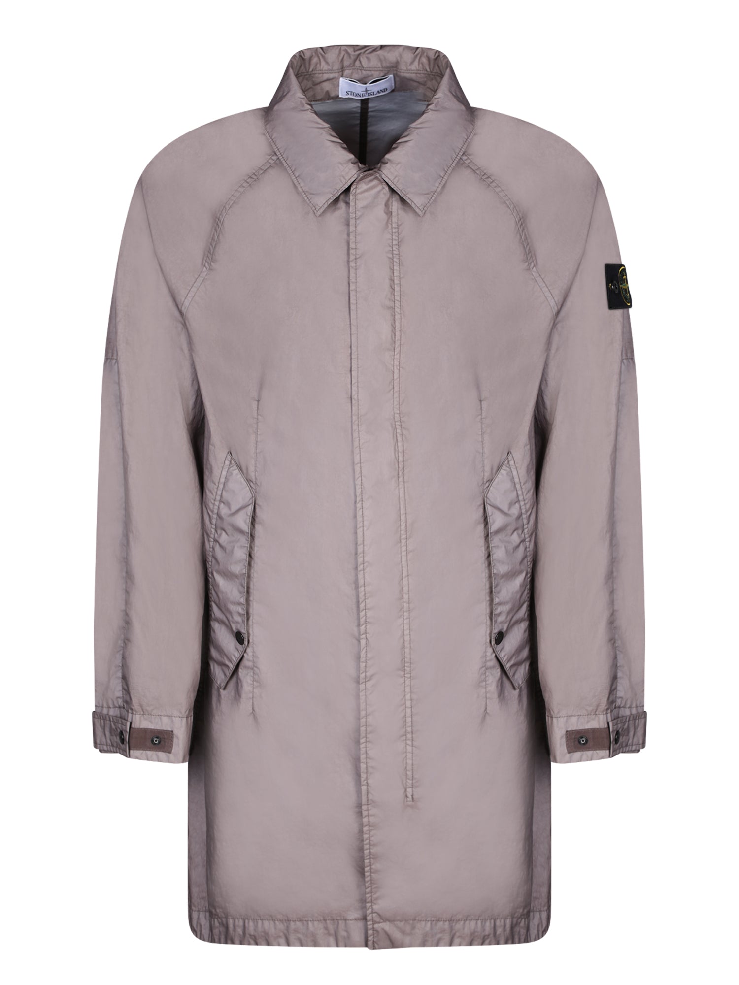 Technical membrane parka that is breathable and windproof. Shirt collar, hidden zip front fastening with buttoned flap, welt pockets with flap, iconic Stone Island badge detail on the sleeve.