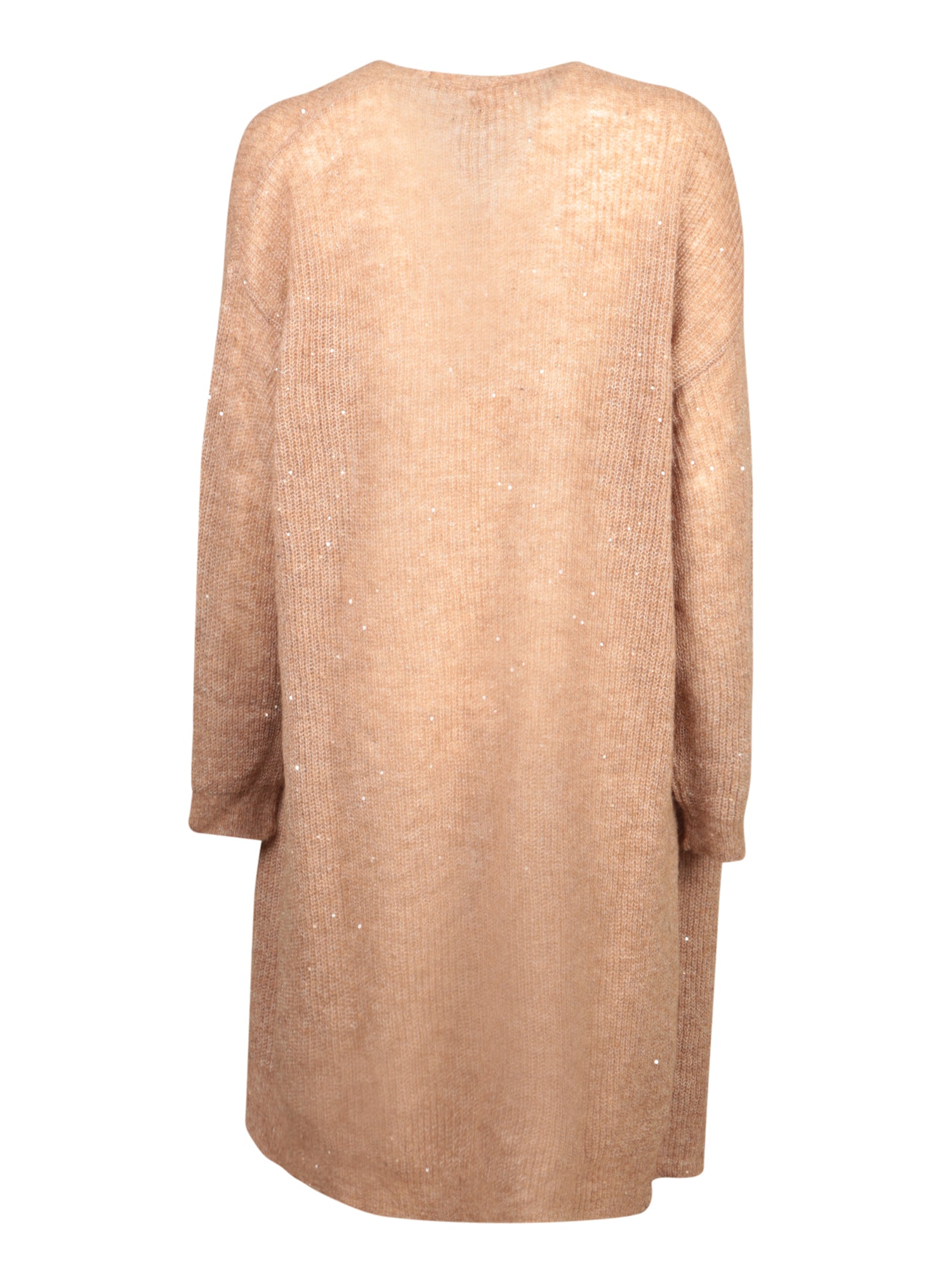 Flowing open front. Soft textured knit fabric. Long sleeves.