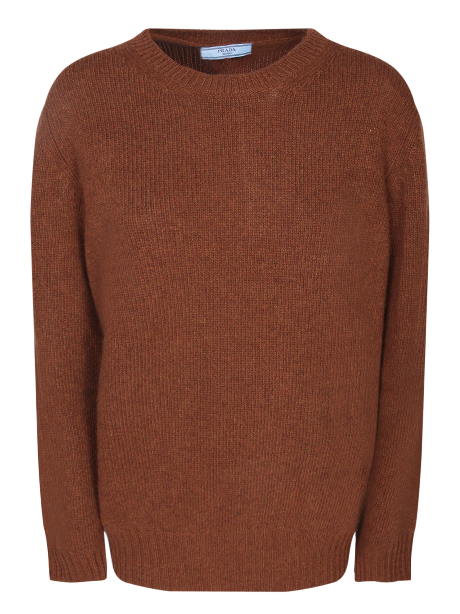Cashmere and wool sweater. Tobacco color. Crew neck. Long sleeves. Ribbed trim.