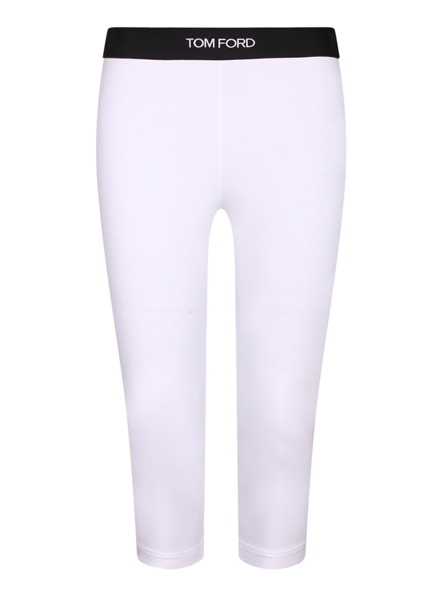 7/8 length leggings. Elastic logo waistband. Fitted design.