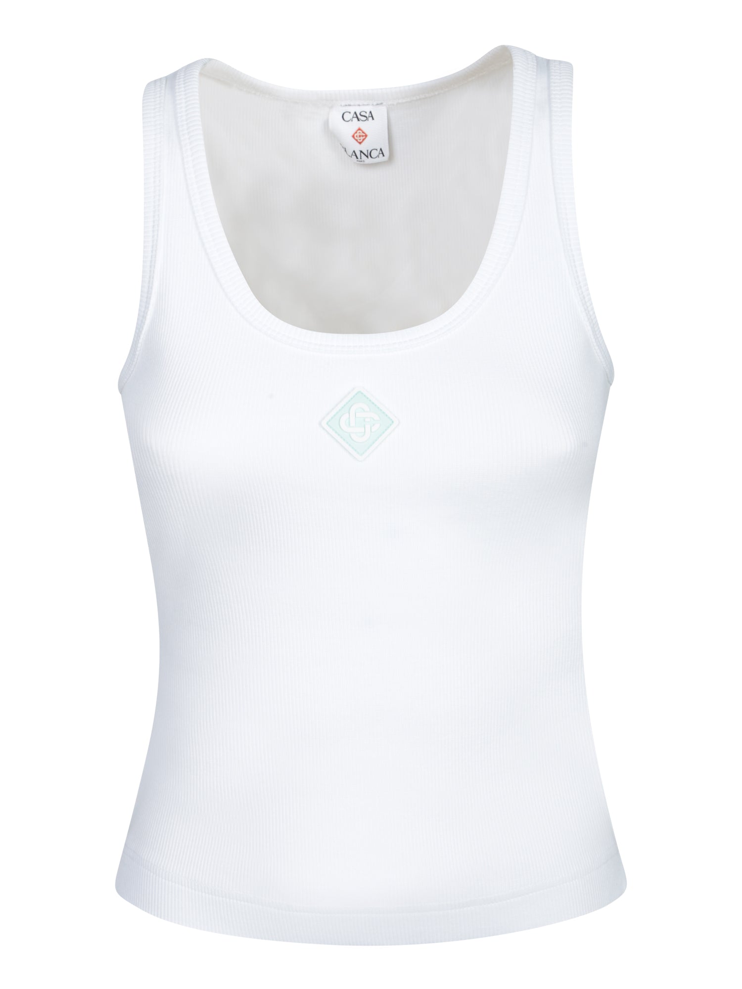 CASABLANCA's Ribbed Cotton Tank Top enhances the silhouette with a snug, comfortable fit. Finished with a delicate monogram logo, it's perfect for a refined everyday style.