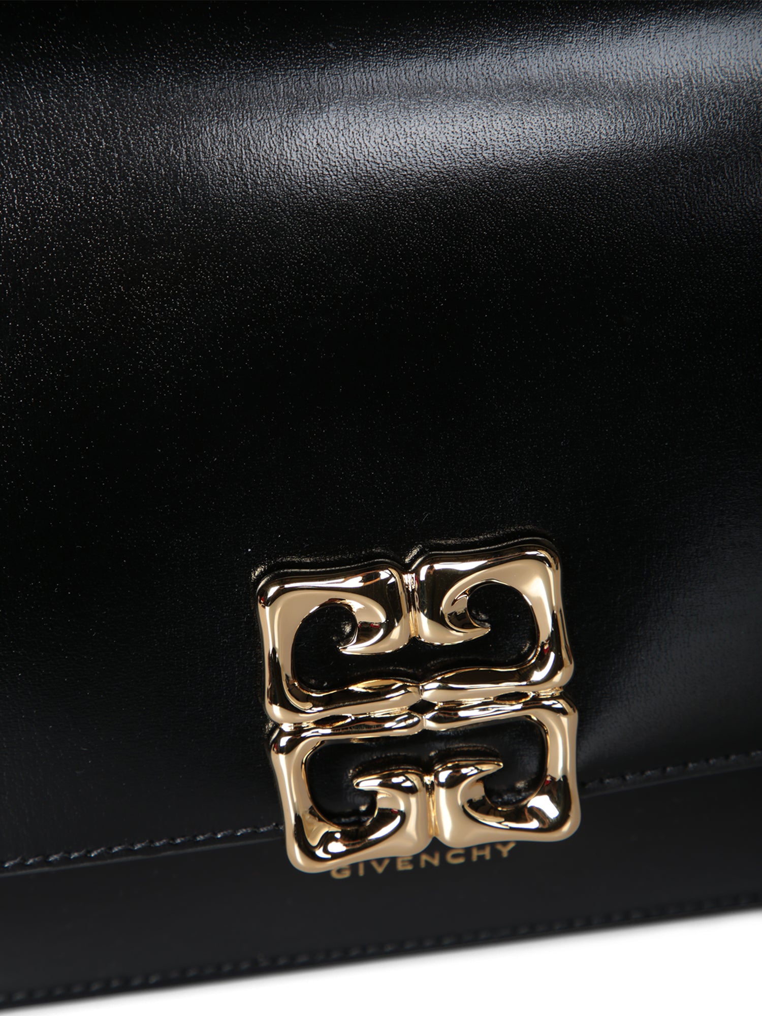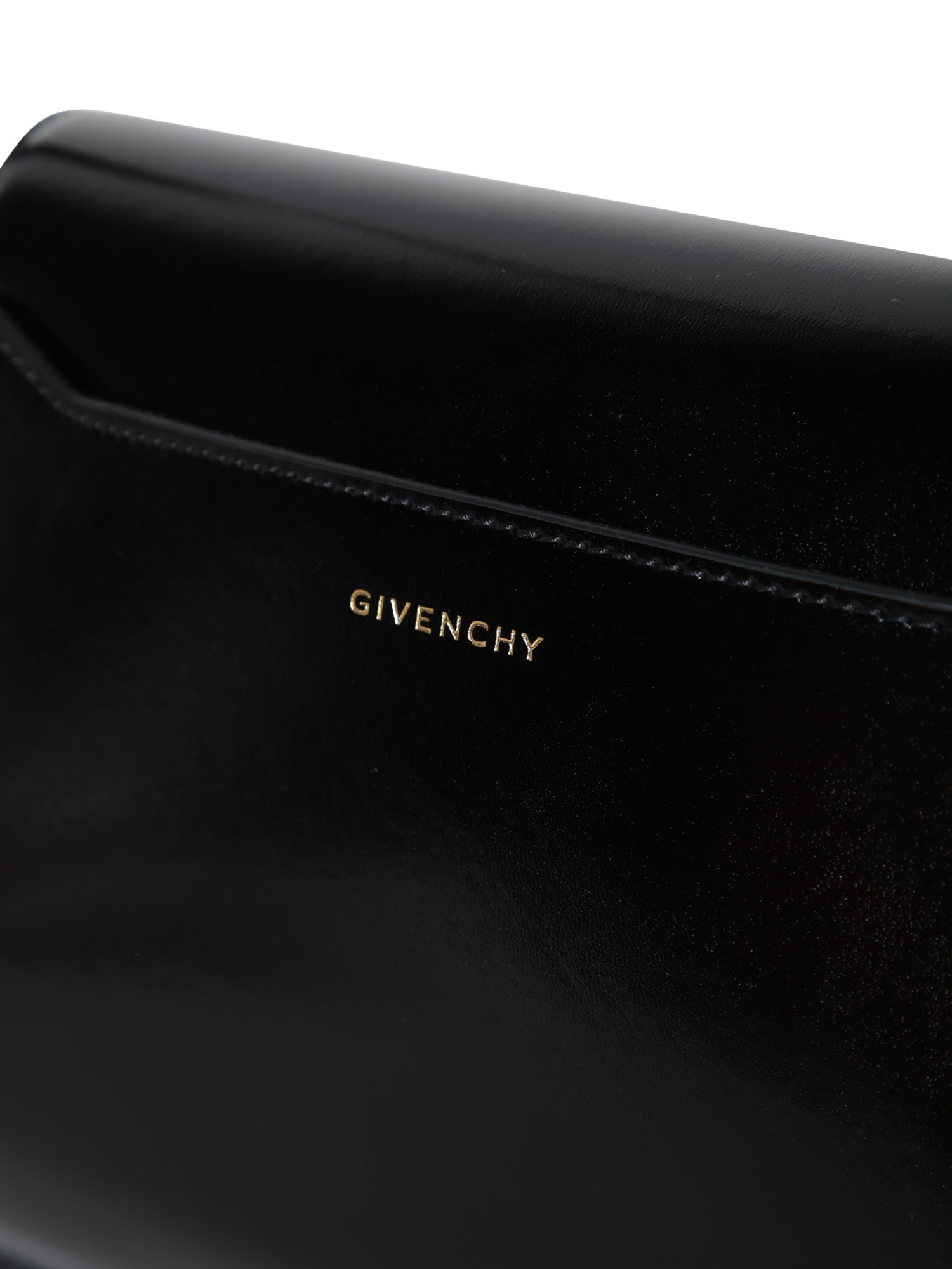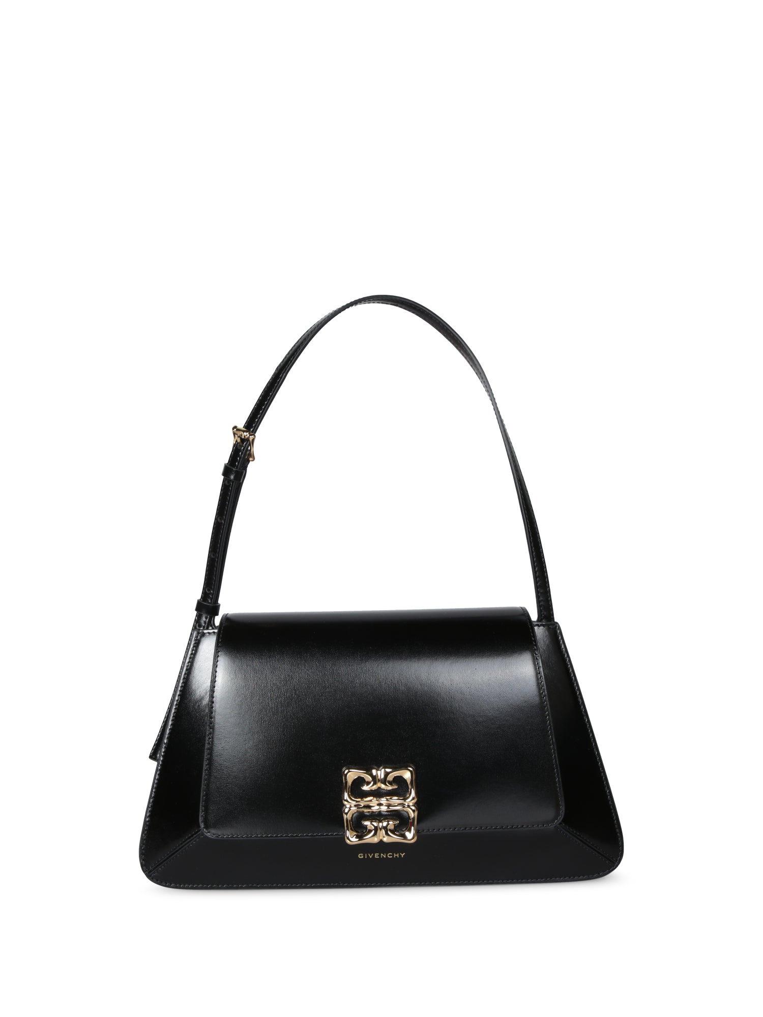 This elegant Givenchy shoulder bag, crafted in high-quality smooth leather, features a structured silhouette with a distinctive golden 4G padlock adding a touch of classic sophistication.